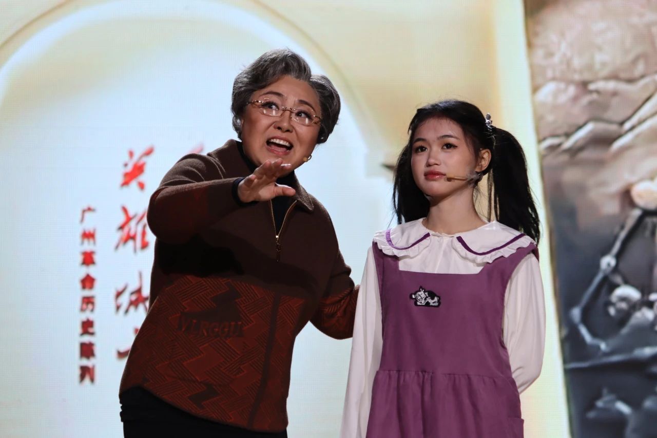 于妍老师(左)与李舒程同学(右)分饰串场剧目的祖孙