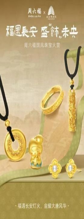 创作理念:佩戴周六福与西安博物院联名款《福韵长安》珠宝,不仅能带来福运,还能了解长安文化的发展。