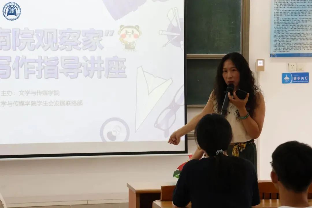 2024年5月8日下午15:00,记者大赛“我是南院观察家”新闻写作指导讲座在1教301顺利召开。此次活动邀请了英国威廉集团专职教师陈颖老师主讲,旨在帮助大家理解和掌握新闻写作技巧,从而提高新闻整体质量。