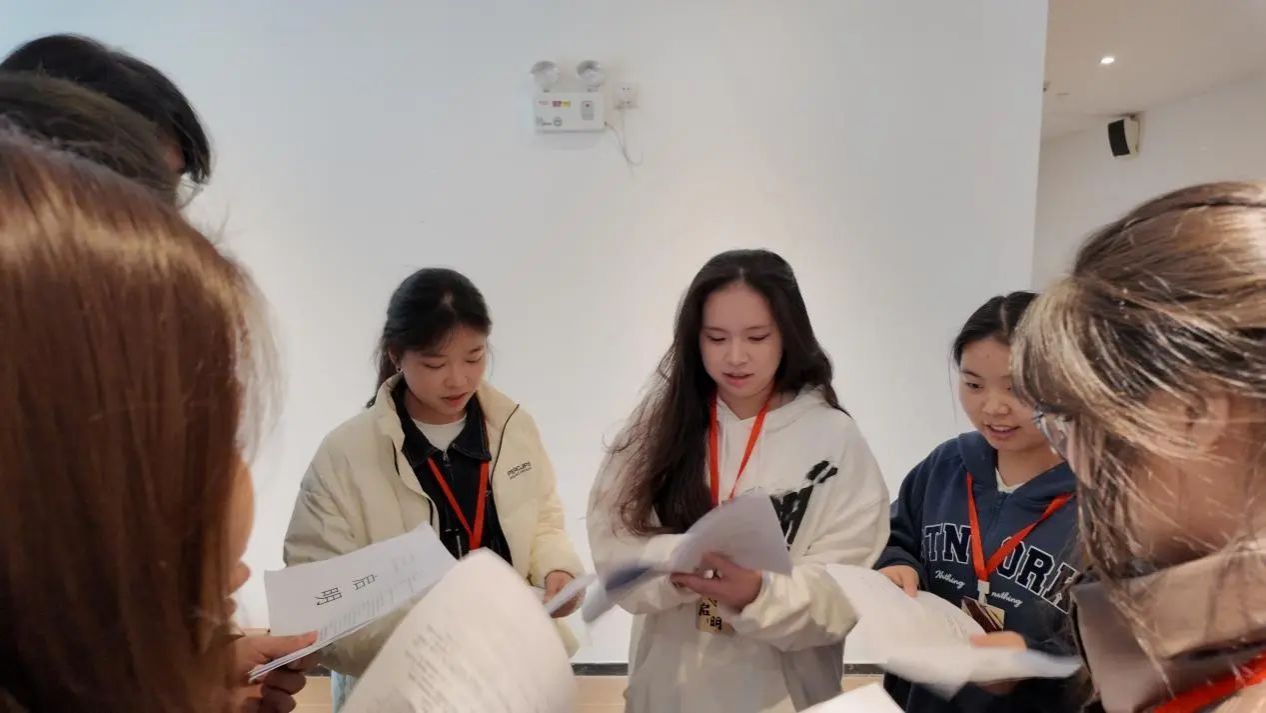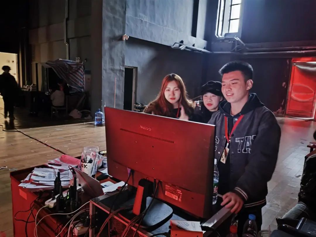 每一次的文传实践课程展演都涉及到较多的表演单位和同学。舞台两侧候场人员的调动以及各个表演单位的催场则是催场组的主要任务。在前期工作中,由于催场组与表演单位缺少沟通以及演职人员们对剧本与舞台不熟悉,协调程度不高成了他们必须在演出前解决的最大问题,在多次的会议和与各表演单位的负责人的沟通后,他们也终与所有演职人员一同齐心协力为大家呈现了一场完美的演出。