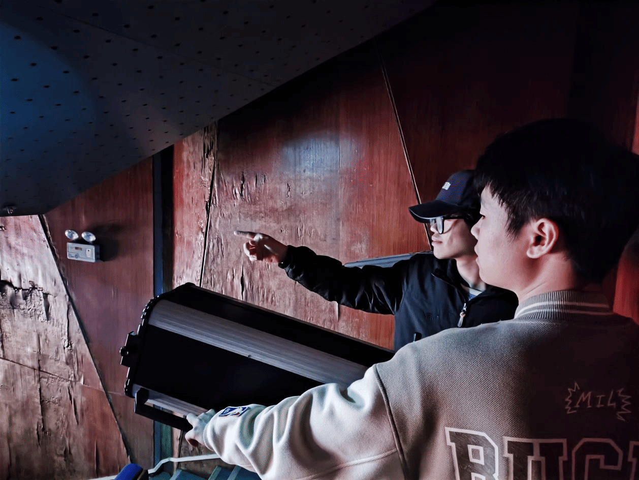 顺着追光光束的方向看去,大礼堂最后方就是灯控台的位置,这里就是灯光组的工作地点。在展演的筹备过程中,定灯光这项工作时间紧、任务重,灯光组需要提前收集各节目的灯光效果预案,挤出时间来一次次练习。