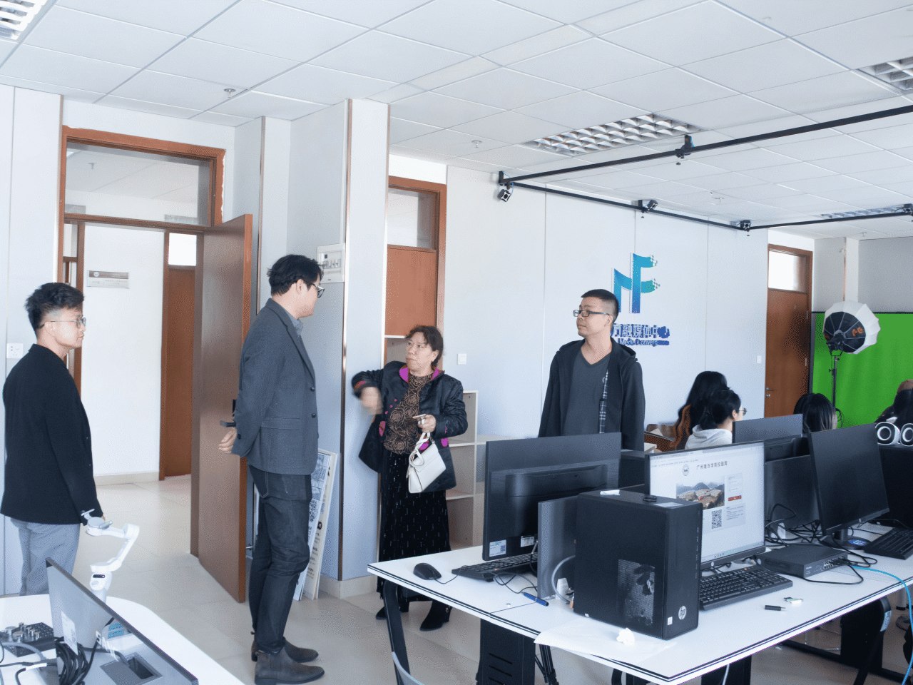 会后,为了更精准、高效地推动教学设备升级,双方一同参观了南方融媒体中心。紫为云公司傅强先生、李有志先生表示,后期会把元宇宙会展云平台应用到我院即将举办的毕业设计展中,打造线上线下同步的双会展模式。