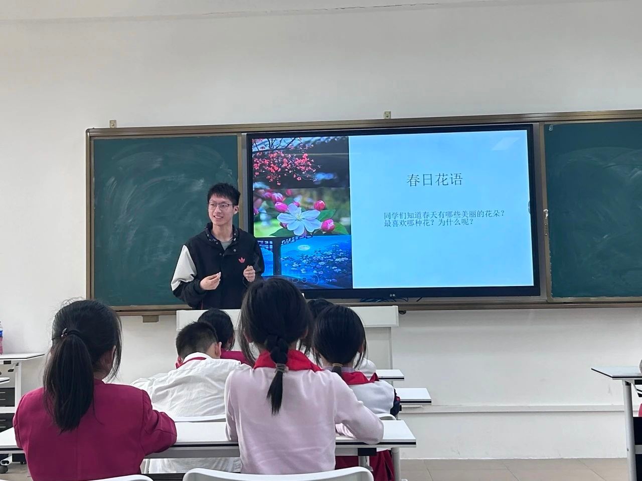 大家好!我是2023汉语言文学专业2班的小老师张家乐,在本次的教学旅程中,我收获颇丰,也有诸多感悟。当我站在讲台上,看着孩子们一双双期待的眼睛的时候,我深感责任的重大,在备课期间,尽管在反反复复揣摩知识点,想着如何以最生动有趣的方式呈现给孩子们。可讲课并非一帆风顺,有时精心准备的内容学生反应平平,而一个临时起意的小故事却让他们兴趣盎然。这让我明白教学需灵活应变,得从孩子角度出发。就如老师说的一样,我讲的东西依旧是束之高阁,没有真正让孩子们产生共鸣,这让我不断反思和改进我的教学方法,并开始努力去适应学生们的学习节奏与风格。在这一方小小的课堂天地里,我与学生们一同成长,同时也期待着,在未来的日子里,能和孩子们继续携手前行,创造更多精彩的课堂瞬间,见证彼此更绚烂的成长篇章。