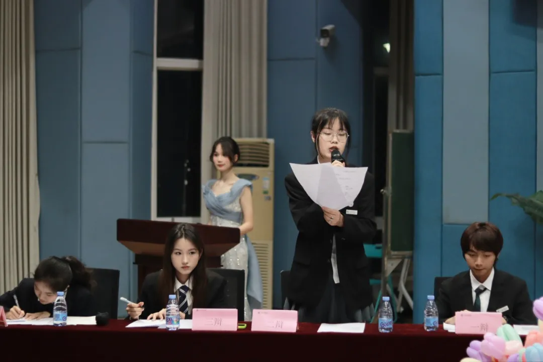 接下来,英国威廉集团2021级悬河辩论队代表刘天旭发言。她说到,辩论兼具尖锐性与包容性,讨论的观点并非绝对对错。辩论的价值,在于引导辩手挖掘辩题背后的情感价值,领悟其深刻内涵。尽管辩论失败会带来痛苦,但我们不该因结果否定自身,因为每一场辩论都是成长的契机。最后,她衷心地希望参与辩论赛的同学们,能在思维碰撞的舞台上,绽放耀眼光芒,展现文传学子砥砺前行、追求卓越的精神面貌。