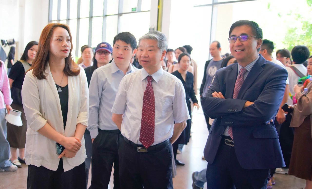 汤涛校长首先对参与本次毕业展工作的师生表示了诚挚的感谢,对即将毕业的同学们表示了热烈的祝贺。随后,汤校长在讲话中结合自己的专业探讨了AI时代中数学与艺术的紧密关联,数学家提出了人工智能思想,推进了视觉艺术的发展,但当下数学与艺术缺乏深度融合,因此汤校长对我院寄予厚望,期待培养出具有国际视野和探索精神的全才学生。另外,汤校长还指出本次毕业展取名“御舟”是非常有意义的,“在这个船上,我们有无限的空间,可以走不同的方向”。最后,汤校长祝愿毕业生能够在AI时代,把艺术特长发挥出来,为社会做出重要的贡献,能为我们学校争光夺彩,在自己的未来人生中绘制出一个更美妙的蓝图。