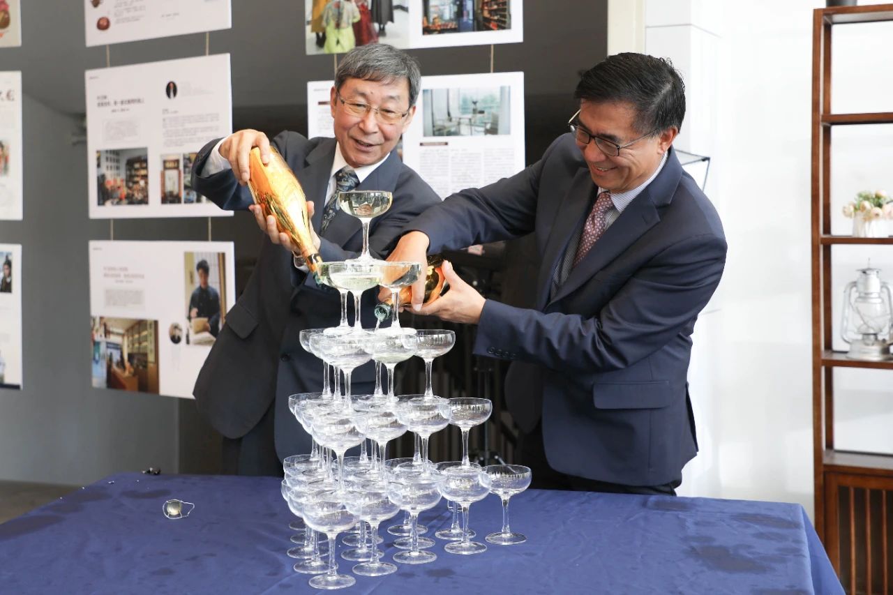 汤涛校长和孙立院长在现场举行香槟塔仪式,正式拉开了毕设展的序幕