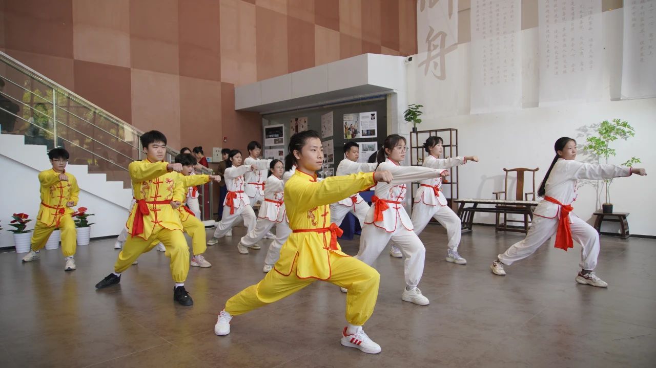 一段行云流水的太极五步拳表演为开幕式带来亮点。表演者身姿舒展,招式刚柔相济,在动静转换间诠释“以柔克刚”的东方智慧,为科技感十足的毕设展注入一抹典雅的文化底色。这场传统与现代的碰撞,不仅展现了学子们多元的才艺素养,更契合毕设展“AI时代下传播与人文共生”的深层意涵——正如太极讲究“阴阳平衡”,在技术浪潮中,学院始终重视传统文化根基与时代创新的结合。