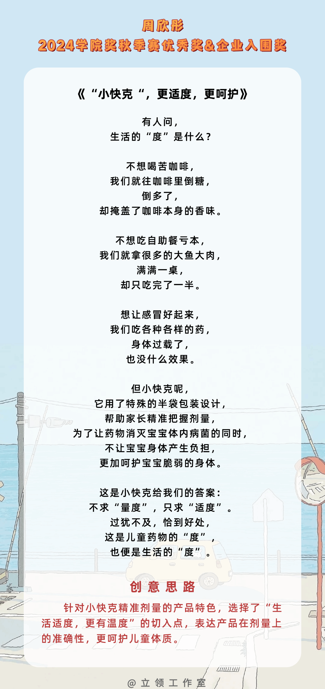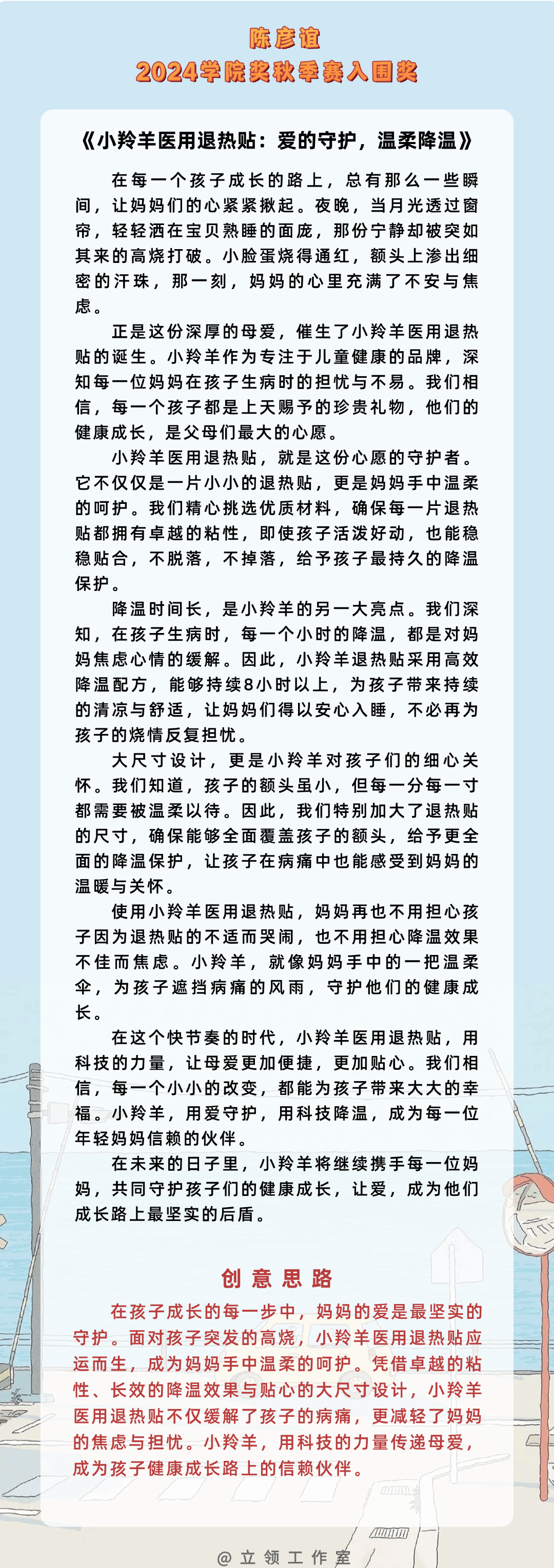以下作品为我校文传学院的罗希老师所指导。罗希老师在课堂上与学生们一起头脑风暴,指导学生的参赛作品,下面一起欣赏同学们的奇思妙想与灵感之作吧。