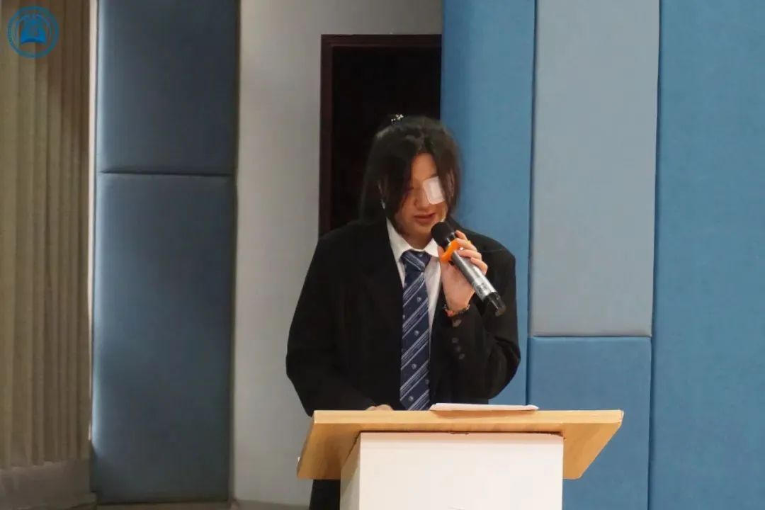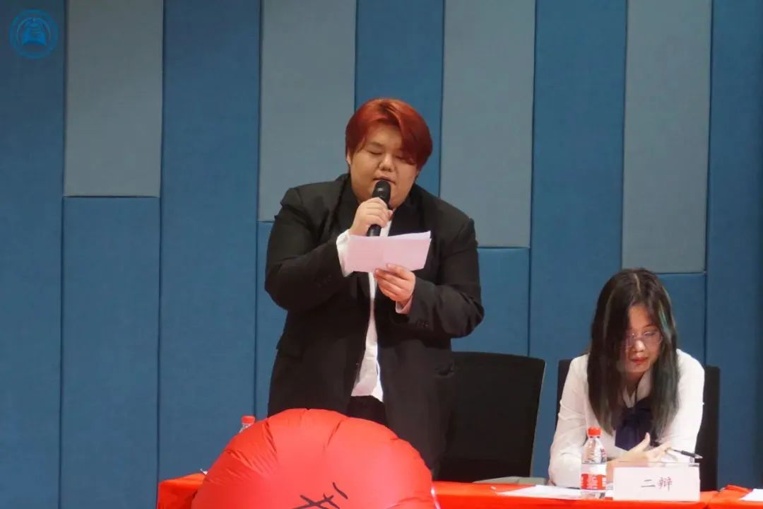 随后,由我院21级悬河辩论队队长刘天旭发言。她说道:辩论就像是换了一个形式的自我反思、自我驳斥,我们是文字的传递者,当文传和辩论进行碰撞,会产生出更加不可思议的火花。如她所表示“有人听的时候,说话才有意义;有人热爱的时候,辩论才意义。”
