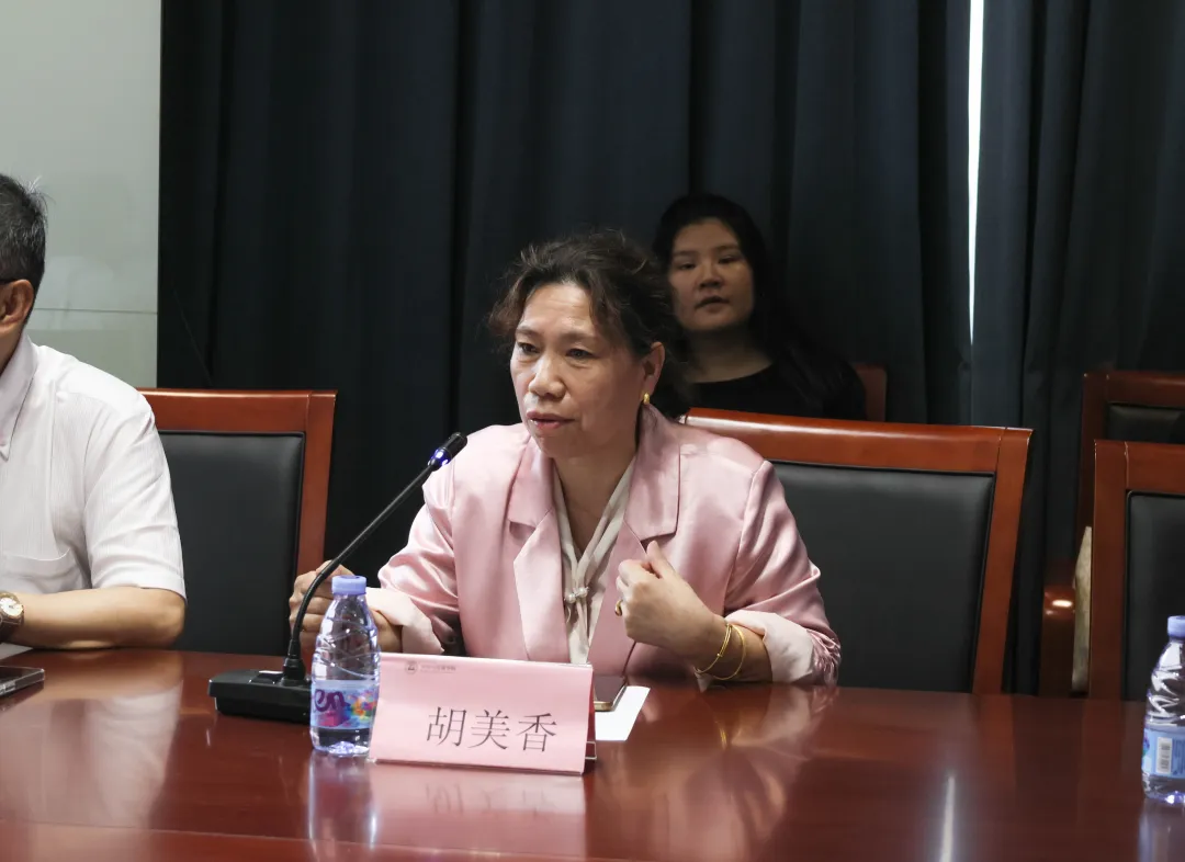 胡美香主任向桂林学院的教师代表全方位介绍了我院网络与新媒体专业的具体情况。她指出,学院以产教融合为指导理念,对课程架构进行调整,从育人导向、融合培养、求真务实、特色兴业四个角度,制定以提升学生实践应用能力为核心的培养体系。她着重指出,我院网络与新媒体专业在课程体系建设、人才培养创新和教育成果转化等方面取得了显著成效。在课程体系建设方面,专业构建了“基础+方向+实践”的三维课程架构,即基础课程涵盖数字多媒体创作、传播学、摄影摄像等核心内容;课程方向聚焦用户研究、产品管理、AR/VR开发等前沿领域;同时依托校内实训中心和校外实践基地,构建了完善的实践教学体系。在人才培养模式方面,专业创新性地采用“新文科+新工科+新商科”多学科融合培养模式,打破传统学科壁垒,设立了“产品设计与运营”和“数智媒体与人工智能应用”两大特色方向,实现人才培养的精准化与特色化。在教育成果方面,专业建设成效显著:教师团队成功申报省级以上科研项目10余项,发表高水平学术论文多篇,获得发明专利和软件著作权多项;专业课程获评省级一流本科课程,为专业的持续发展奠定了坚实基础。