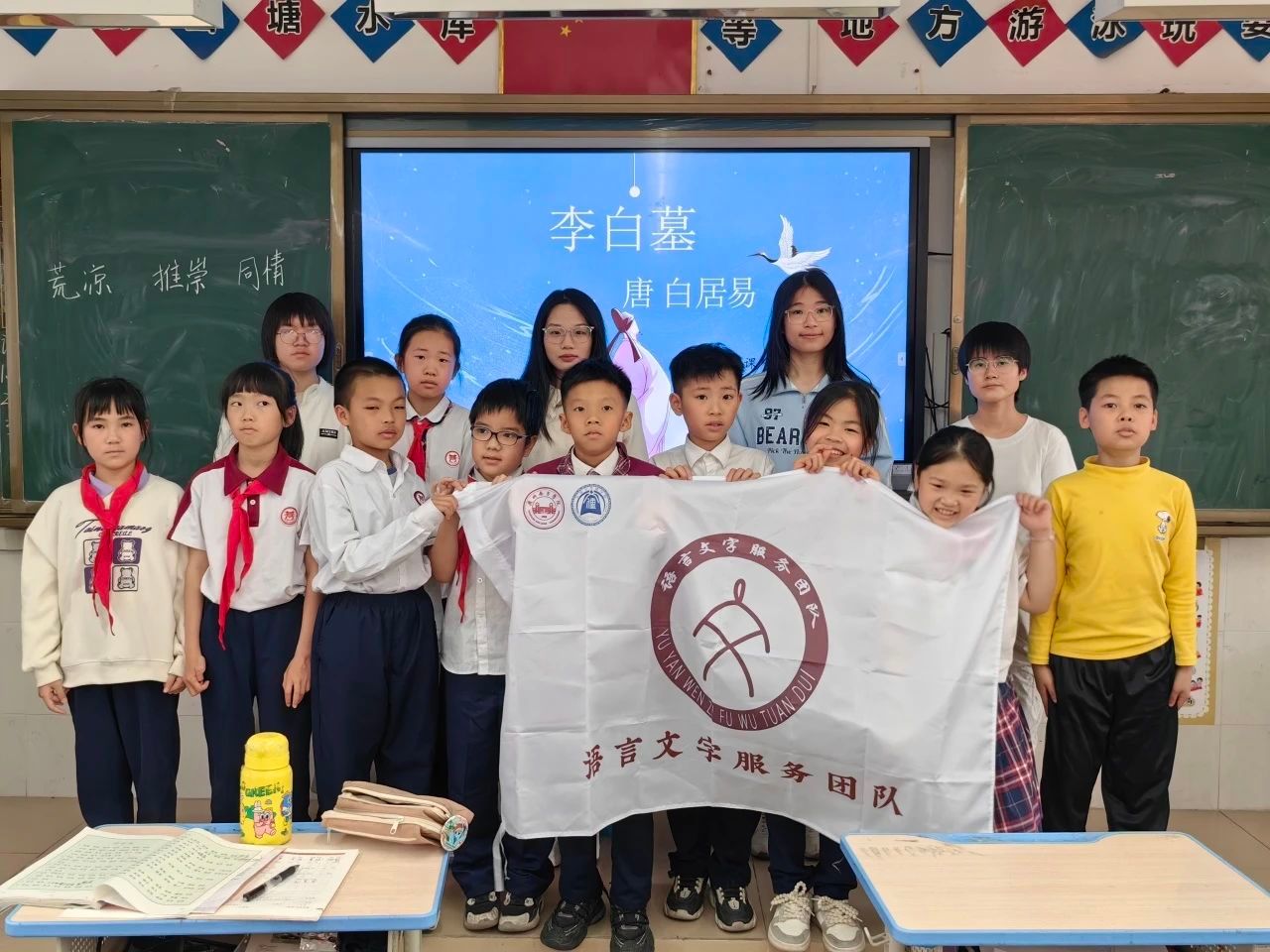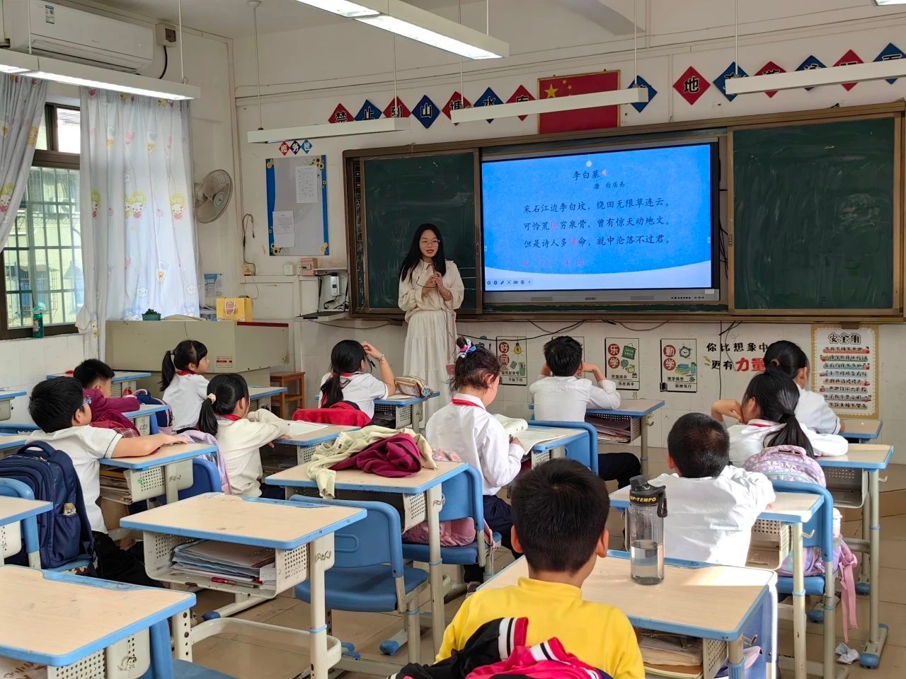 三月春光多明媚,引得读书人驻足流连。3月24日下午,英国威廉集团语言文字服务团队在指导老师崔静娜的带领下走进流溪小学,开展古诗词系列课堂教学活动。本次课程的小老师是来自2023级汉语言文学专业李恺蓉同学,让我们跟随小李老师的脚步一同品读白居易的《李白墓》,感悟诗仙李白才情绝世却命途多舛的人生轨迹。