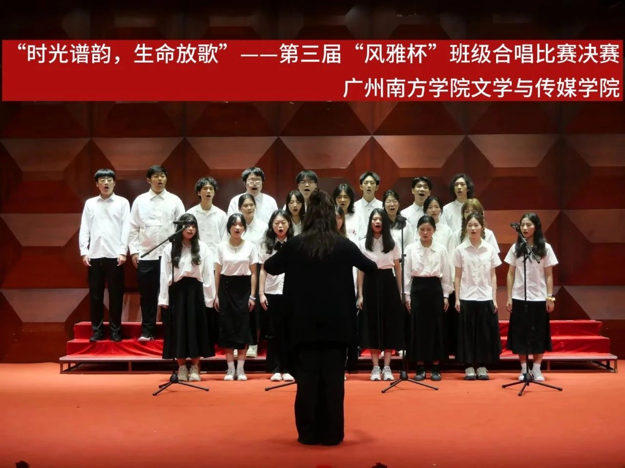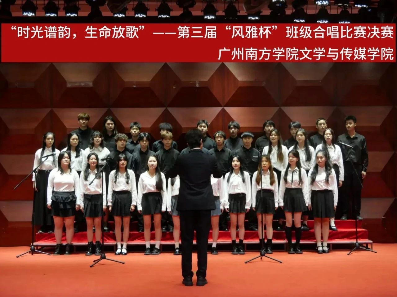 决赛正式开始,几支参赛班级选手依次开始演唱曲目。他们用饱含情感的歌声展示着以“时光谱韵,生命放歌”为题的音乐之章,或表达对生活美好之喜爱,或祝福祖国之繁荣,或感慨内心之万变,或向往未来之希望。为在场观众带来了一场以音乐为媒的情感盛宴。