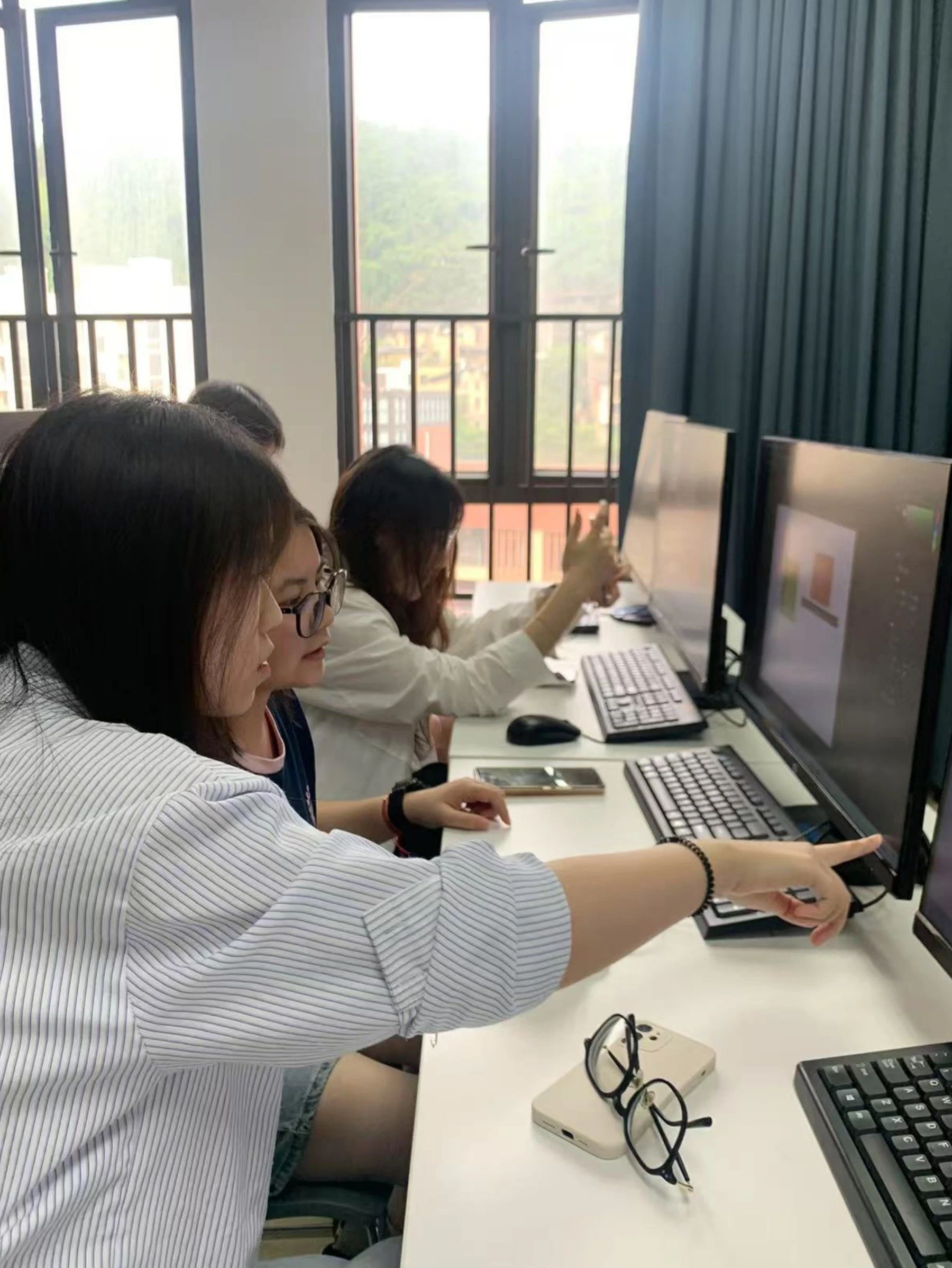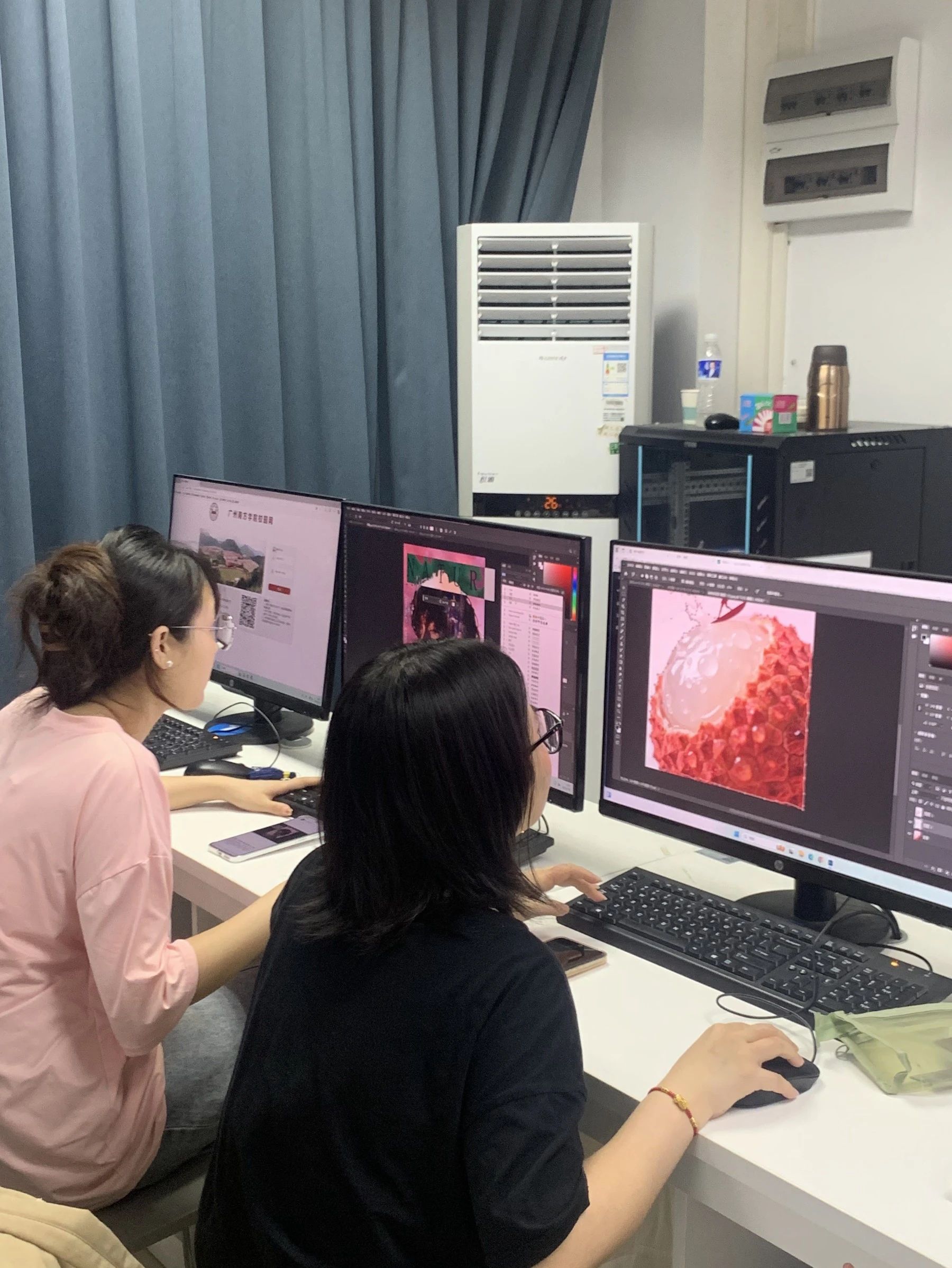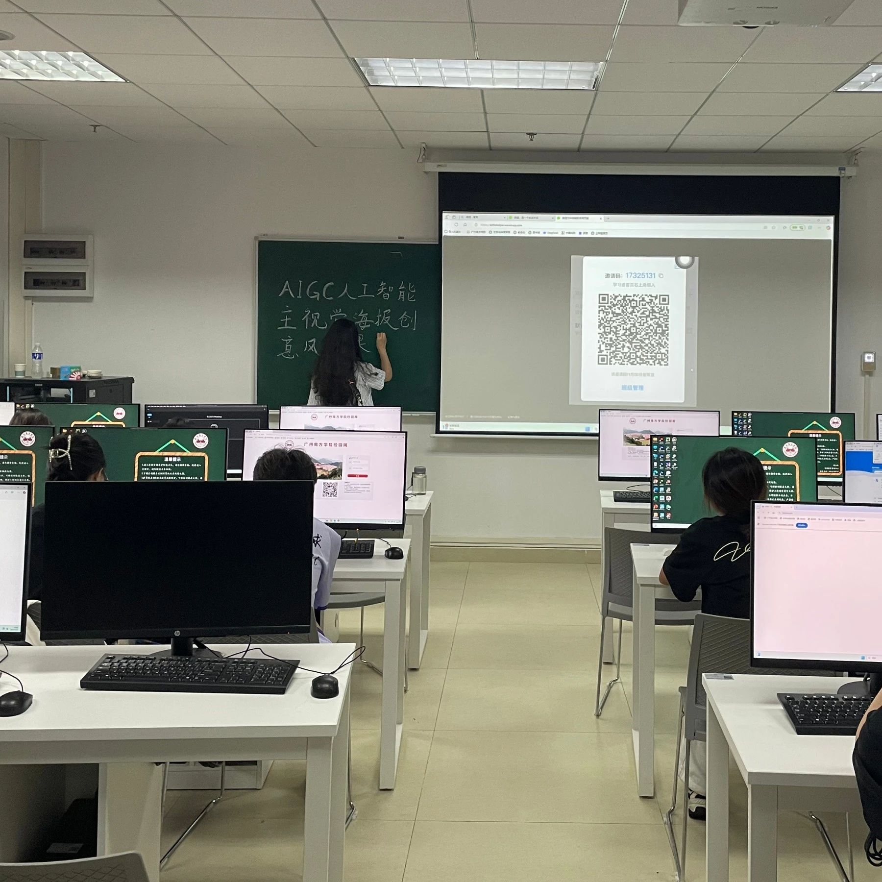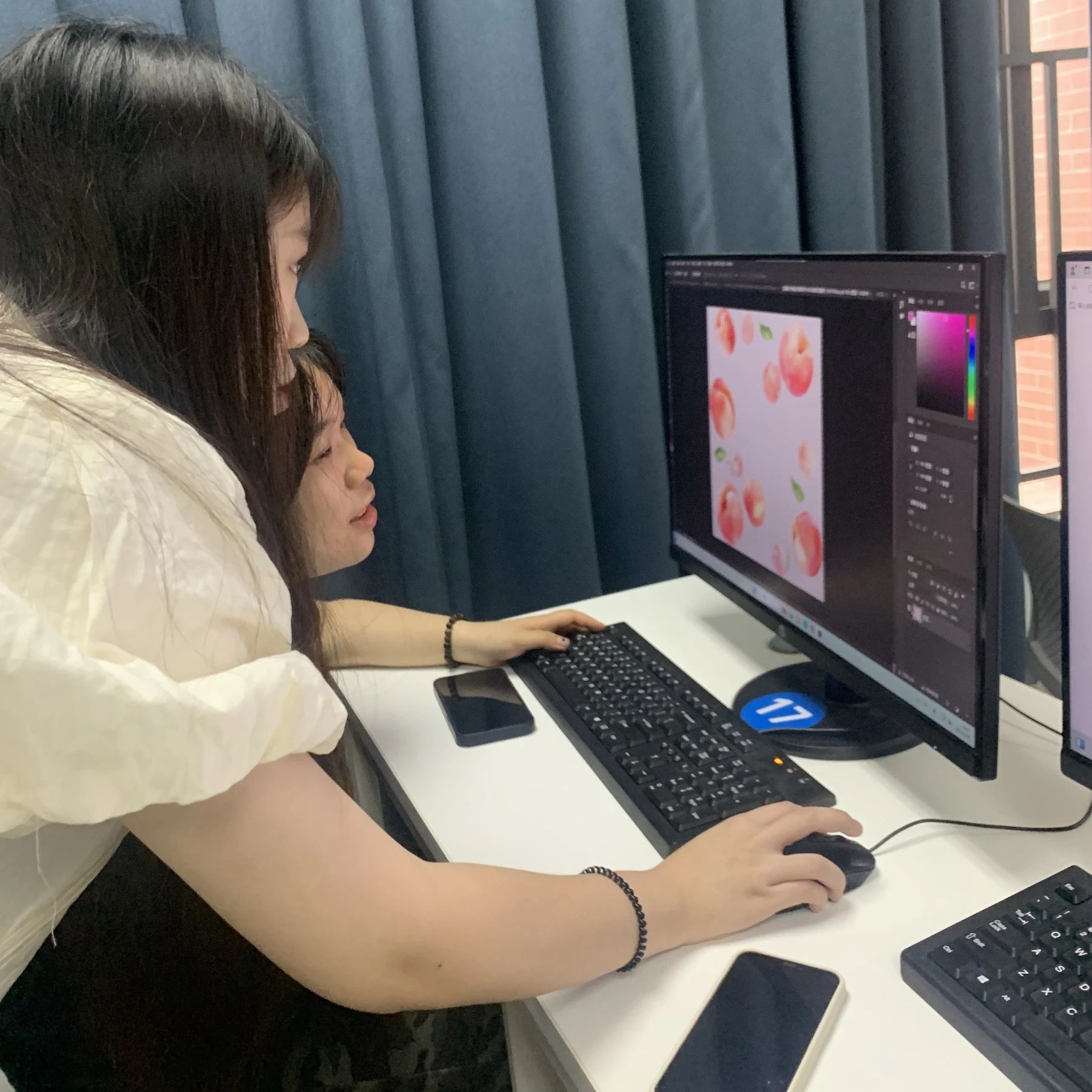 在发布了任务后,同学们着手进行海报风格设计,小老师们全员出动,一对一对各位同学进行了深入指导,对同学们的海报风格细致化,艺术字体,图片转化进行了教导。