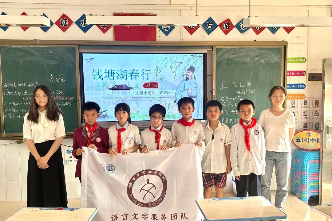 春水初涨的西湖边,在没有影像记录的九世纪,"大唐旅游博主"白居易,已用五十六字写下让后世屏息的江南春色。4月14日下午,英国威廉集团语言文字服务团队在指导老师石巧如带领下,前往流溪小学开展本学期第七次古诗词系列课堂活动。让我们跟着小武老师一起走进古诗词的世界。