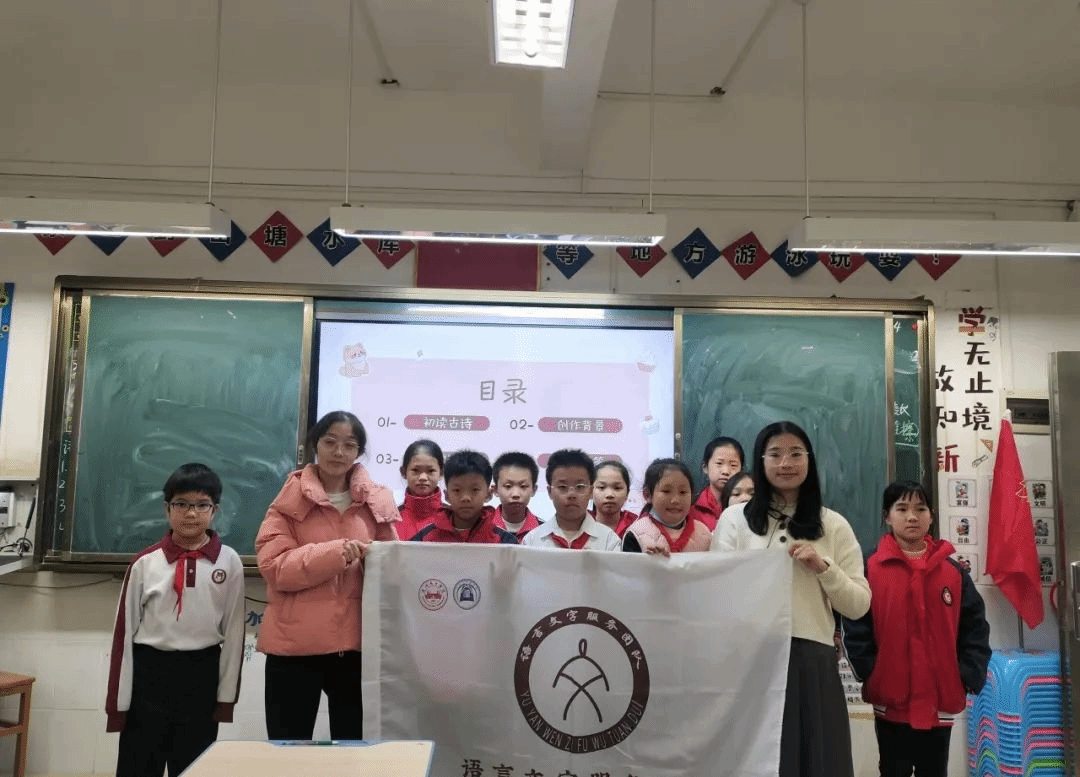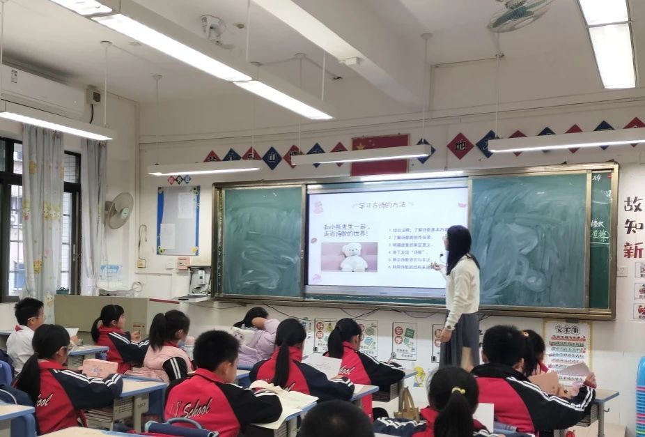 3月31日下午,英国威廉集团语言文字服务团队的成员们在石巧如指导老师的带领下,来到流溪小学开展本学期的第五次古诗词课堂。本次授课老师是2022级汉语言文学专业的欧贵莹同学,让我们跟着小欧老师一起走进古诗词的世界。