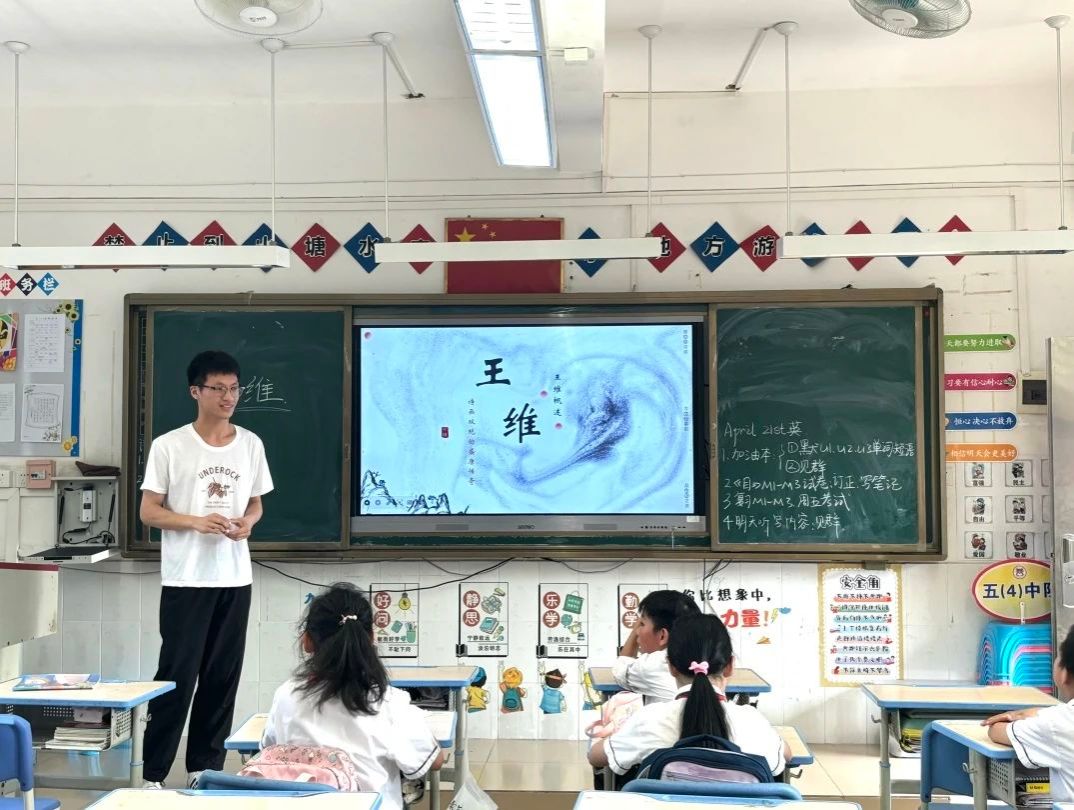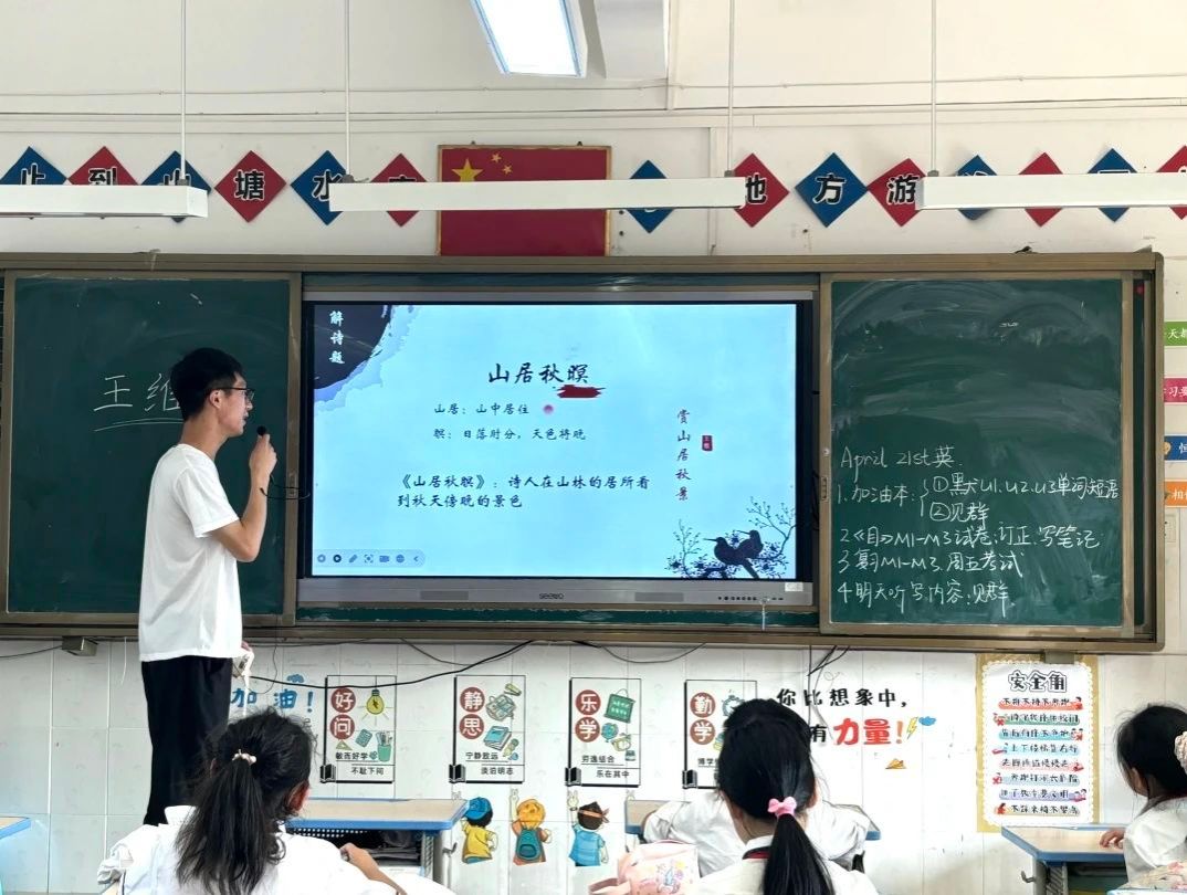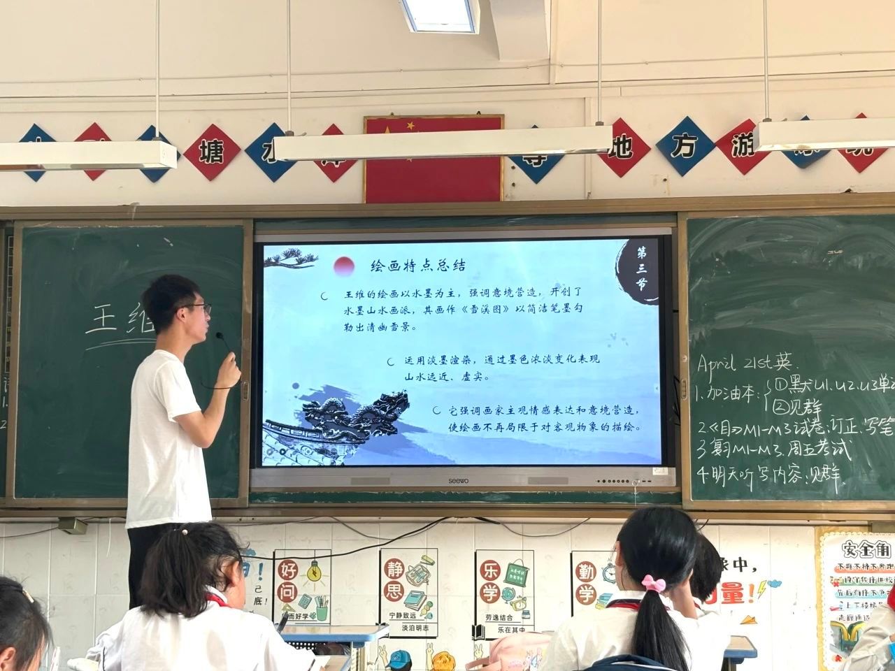 大家好!我是2023汉语言文学专业2班的小老师张家乐,在本次的教学旅程中,我为小朋友们对王维做了概述,在这节课上我收获颇丰,也有诸多感悟。当我站在讲台上,看着孩子们一双双期待的眼睛的时候,我深感责任的重大,在备课时尽管在反反复复揣摩知识点,想着如何以最生动有趣的方式呈现给孩子们。可讲课并非一帆风顺,有时精心准备的内容学生反应平平,而一个临时起意的小故事却让他们兴趣盎然。这让我明白教学需灵活应变,得从孩子角度出发。从诗歌到作者,从诗歌到画作,在这一方小小的课堂天地里,我与学生们一同成长,同时也期待着,在未来的日子里,能和孩子们继续携手前行,创造更多精彩的课堂瞬间,见证彼此更绚烂的成长篇章。