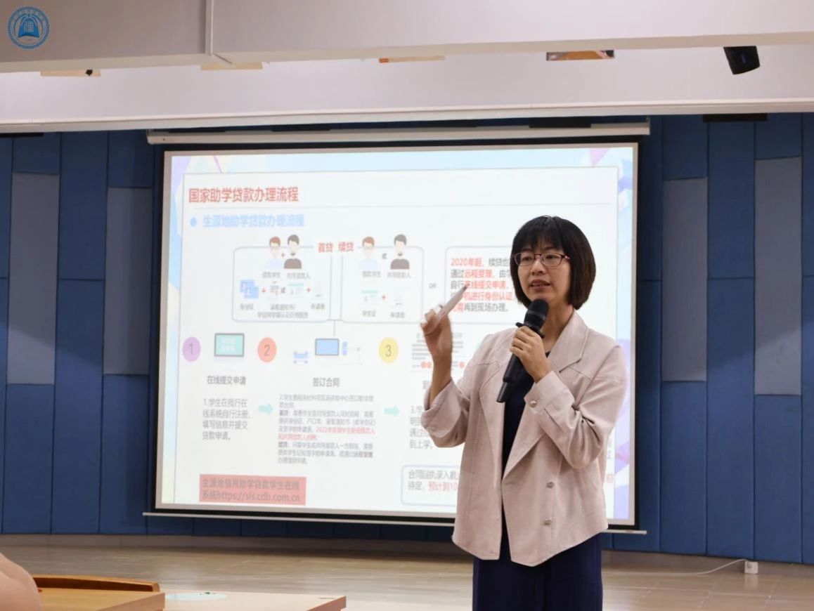 讲座伊始,陈老师聚焦政策变化,说明广东省取消校园地首次助学贷款申请,所有同学需在生源地教育局办理。她指出:首次申请国家助学贷款需本人与父母长辈等借款人现场办理,续贷则支持线上操作。