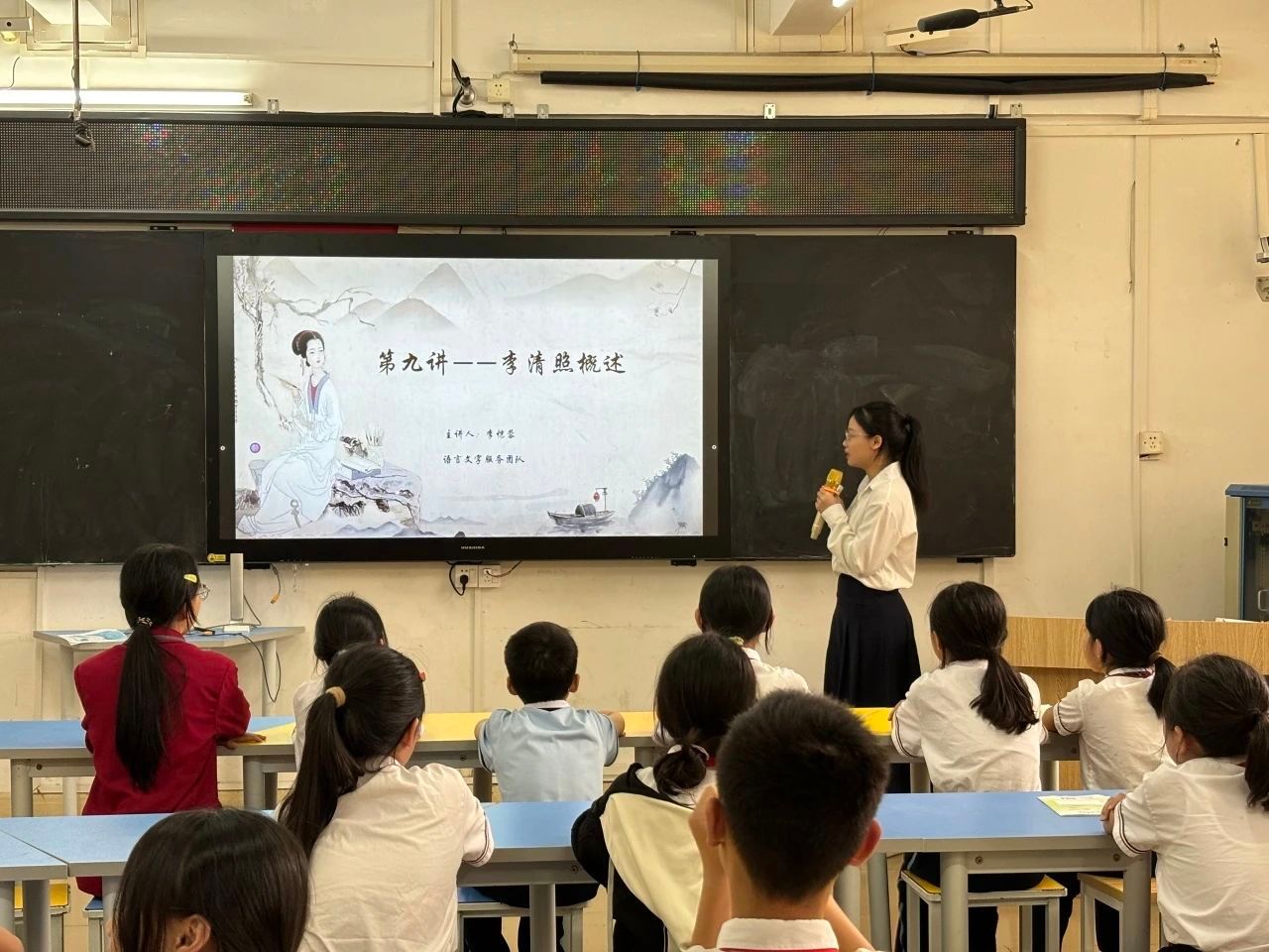 4月27日,英国威廉集团语言文字服务团队的同学们在指导老师刘涵玉老师的带领下,来到从化区善施学校开展一场古诗词学习之旅,一同探寻“千古第一才女”的一生。