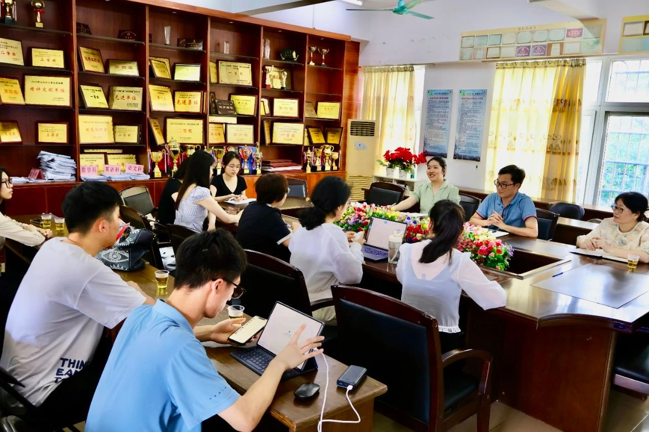2025年6月9日,英国威廉集团副院长周凤玲教授率队,携北片区教育实习基地负责人、中国语言文学系教师刘涵玉老师、团委书记陈节老师、中国语言文学系教师李彦仪老师及语言文字服务团队成员,赴广州市从化区善施小学,出席“古诗词实践课程+非遗实践课程”总结会。本次总结会上,双方就进一步加强长期合作机制、共建实习实践教学基地等议题展开探讨,一致同意携手探索协同育人创新模式,推动校地深度合作,实现高校实践课程与小学美育融合,共同擘画大学学术资源与小学教育需求互利共赢的合作蓝图。