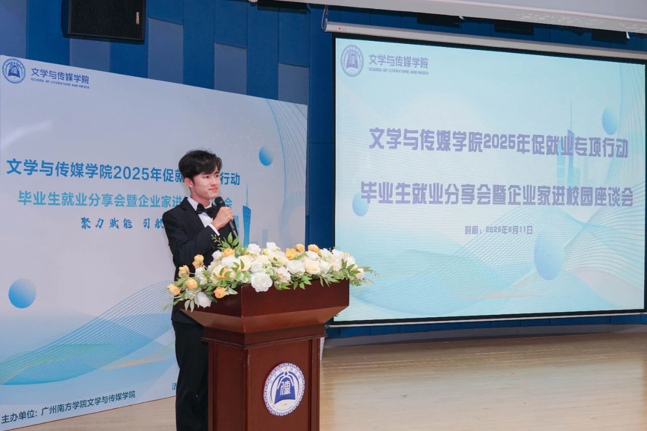 在现场问答环节,企业家们针对学生提出的“汉语言专业同学缺乏专业对口岗位,以及适合文传学子的新兴岗位或转型方向”等问题进行了回答。他们表示,将根据学生的个人能力与潜力进行培养,建议同学们充分发挥自身优势,展示学习能力,并希望同学们能够掌握新兴工具的使用方法,具备创意与创新能力,从而提升自身价值。