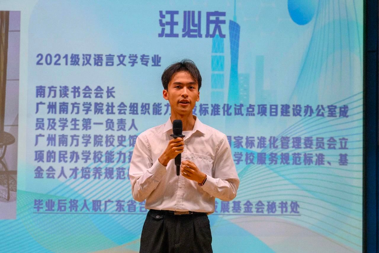 2021级汉语言文学专业汪必庆学长率先分享经验,他回顾了自己从校园走向职场的历程,并分享了在求职过程中如何精准定位和提升自身优势、筛选岗位信息的方法。2021级网络与新媒体专业秦梓茁学长则从职业规划的角度出发,着重强调,在校期间要注重专业知识的积累,同时也要积极参与实习实践,积累项目经验,提升自己的综合能力。2021级汉语言文学专业曾俊淇学长则建议同学们尽早明确职业目标,通过制定短期和长期计划,有条不紊地朝着目标前进。
