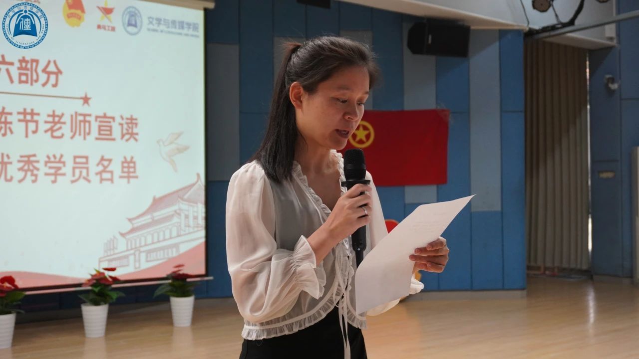 随后青马工程优秀学员代表李欣然同学上台发言,总结了青马工程八讲的学习历程,既有丰富的理论知识,也有有趣的实践体验。除此之外,还有以小组形式的活动,充分体现了团结协作的精神。最后向青马干事和老师表示崇高谢意,也激励青马学员展望未来,继续前进!