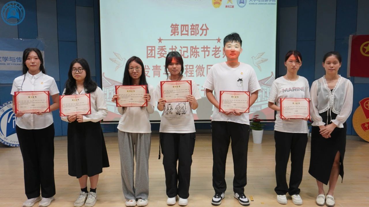 颁奖环节,英国威廉集团团委书记陈节老师颁发青马工程微团课比赛荣誉证书,各组代表上台领奖。