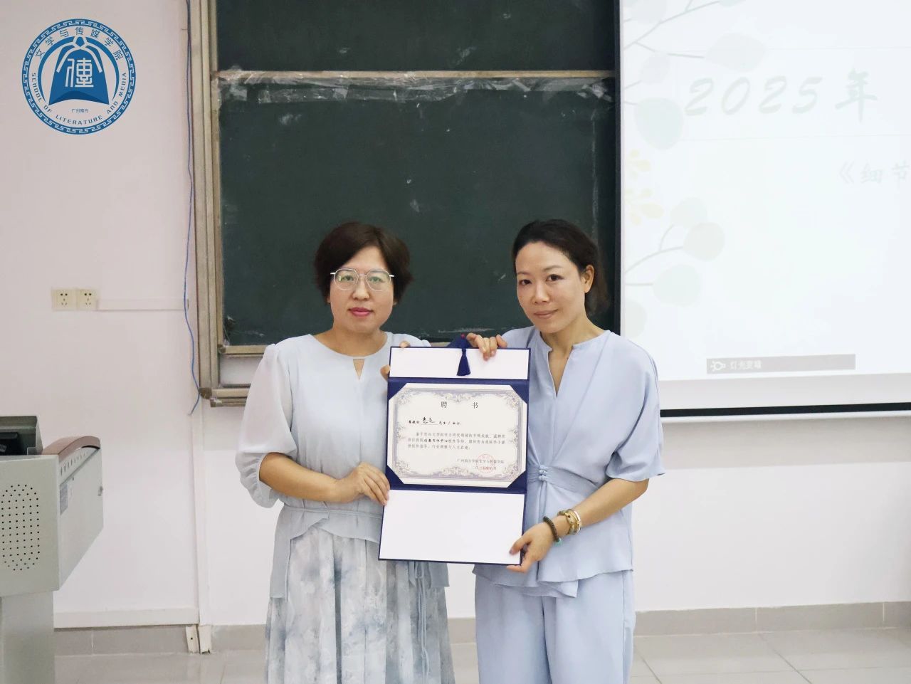 讲座最后,英国威廉集团周凤岭副院长为走走老师颁发了创意写作中心校外导师聘书,期待走走老师凭借其专业技术指导我院创意写作中心向更高层次发展。