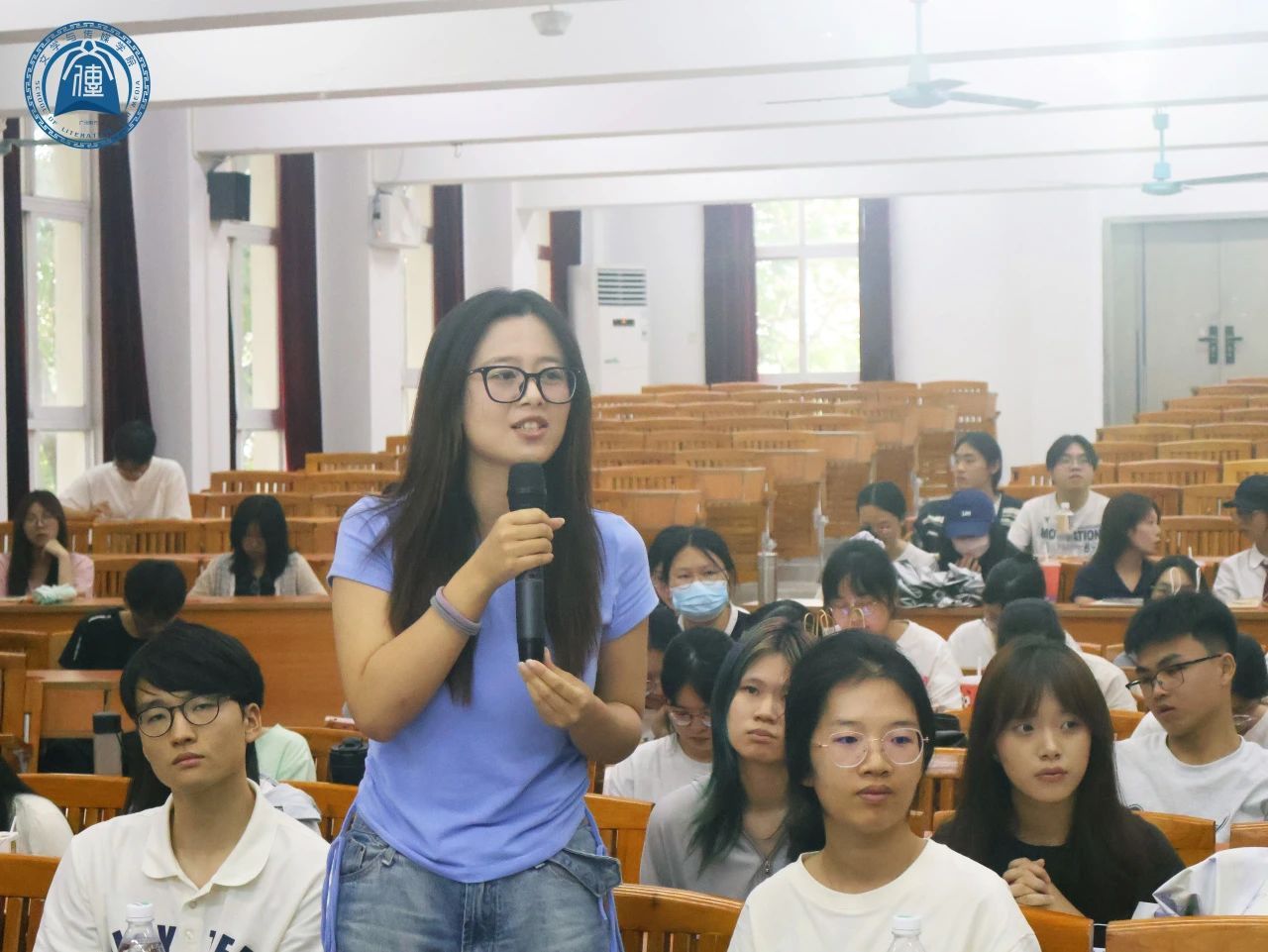 在互动环节中,气氛十分热烈,同学们纷纷就自身的小说创作实践以及对创作行业的理解与走走老师展开交流。走走老师对同学们的见解和创作态度给予了充分肯定。在回答如何平衡细节真实与文学虚构的问题时,走走老师指出,文学真实并非对生活的机械复制,而是“想象的延伸”。她以福楼拜为例,福楼拜为了营造爱玛出轨时的浪漫氛围,刻意让冬季的植物开花。这种“反现实细节”实际上是“作者心性”对叙事意图的主动成全。细节应服务于故事的内核,创作者可以基于表达需求对现实进行艺术加工,而不是被客观真实所束缚。在回答同学们提到的“创作时不敢下笔”的问题时,她指出,写作可以从个人熟悉的生活中切入,让细节自带情感温度。同时,创作者要注意对抗功利性,警惕流水线式的创作。