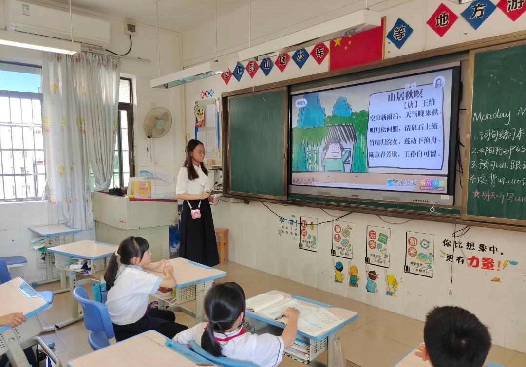 在学习完这首诗歌之后,小武老师设计了“看图猜古诗”的游戏环节,带领同学们复习了之前学过的王维的古诗。同学们踊跃地参与游戏,根据图片和小老师的提示,许多同学都能准确地猜出这些古诗词。