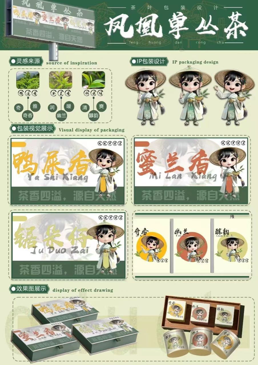 网络与新媒体专业张新宝老师对该作品给予了高度评价。他表示,《潮州·凤凰单丛茶包装设计》这件作品通过挖掘乡村土特产的独特价值,将传统工艺、地域符号、自然生态与国潮现代文化相结合,把学生家乡的土特产转化为现代设计语言,用艺术赋能乡村地方文化产业的发展。
