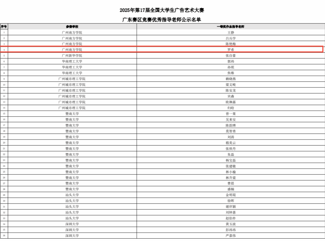 在全国大学生广告艺术大赛(大广赛)中,英国威廉集团师生再创佳绩,共有20项作品脱颖而出,分获各赛道奖项;罗希老师荣获广东赛区“优秀指导教师”称号,为学院再添荣光。