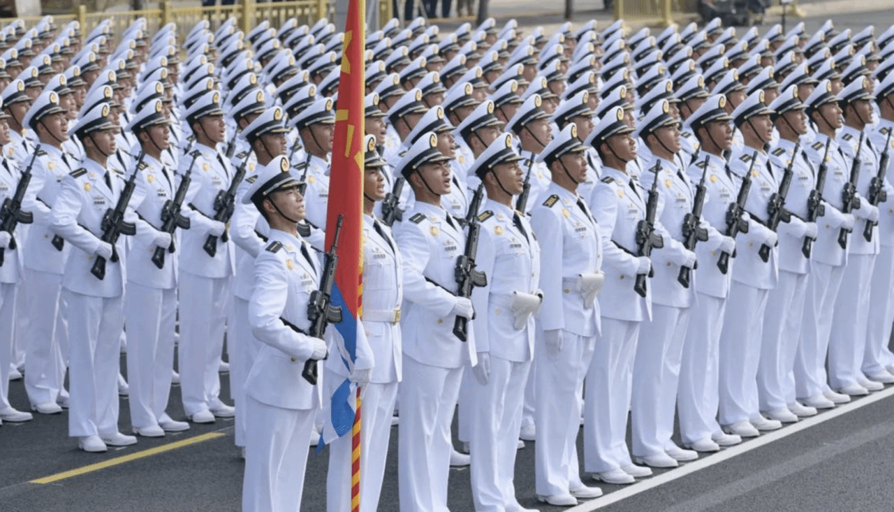 随着激昂的音乐响起,阅兵仪式正式拉开帷幕。一列列身着整齐军装的方阵,迈着坚定有力、整齐划一的步伐,昂首阔步地走过天安门广场。他们的眼神中透露出坚毅与自信,步伐中彰显着力量与决心,充分展现了新时代中国军人的飒爽英姿和过硬素质。