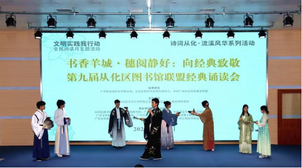 4月23日是世界读书日,在九大实践团队总负责老师吕瑞婷老师和队长杨潇的带领下,金唛司仪队来到从化图书馆,参加从化区“书香羊城·穗阅静好:向经典致敬”第九届从化区图书馆联盟经典诵读会。