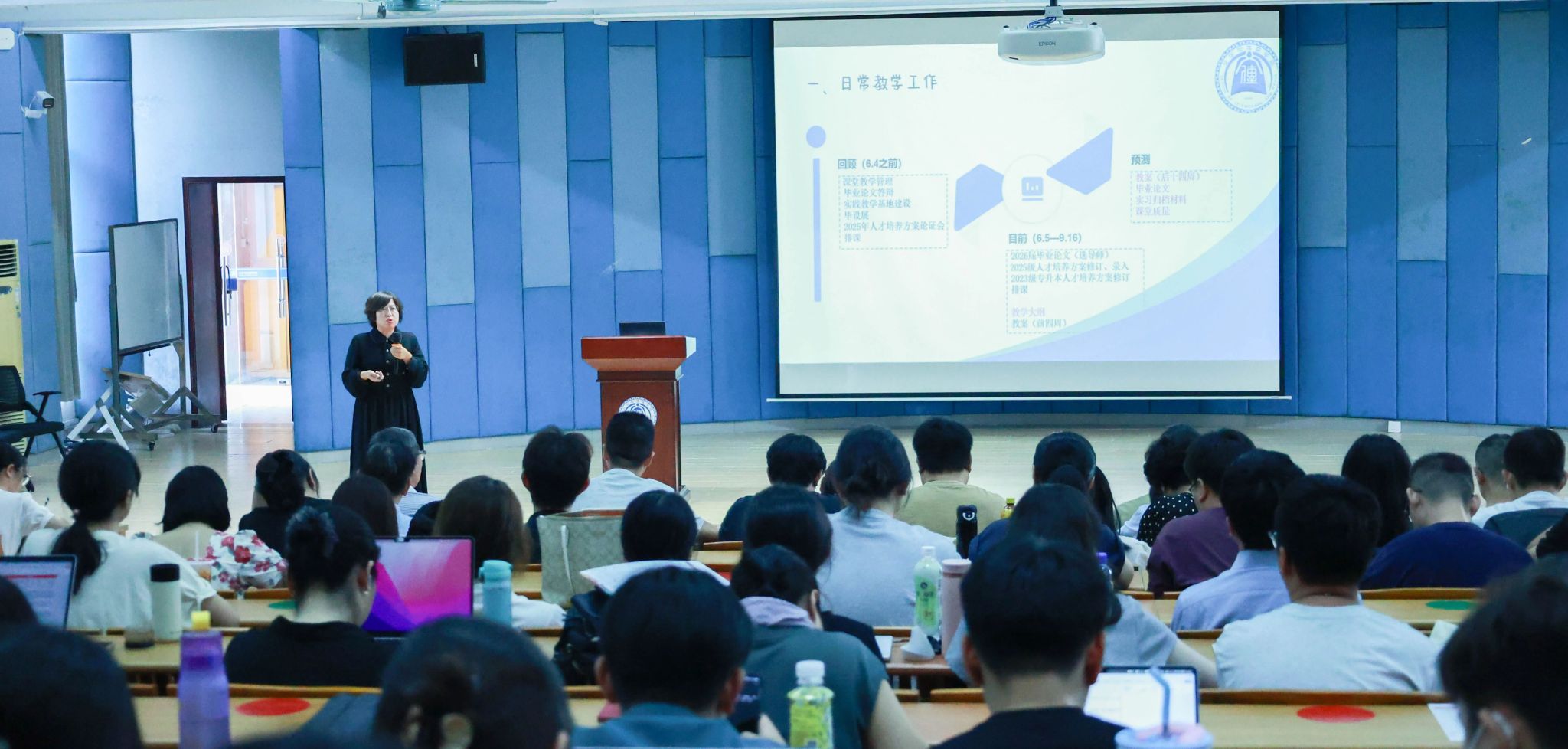 会上,周凤玲副院长对学院教学工作从日常教学、合格评估、教学研究三方面进行了全面总结和部署。她指出,2026届毕业论文准备工作已启动,导师遴选、人才培养方案修订、排课等事项正有序推进。近年来,学院师资力量持续增强,这不仅为为教学工作的高质量发展奠定了坚实基础,同时也对教学管理的科学化、规范化提出了更高要求,这既是挑战,更是发展的动力。她寄语全院教职工要凝心聚力,团结协作,共迎合格评估,并引用“直挂云帆济沧海,乘风破浪会有时”作为勉励,表达了对未来全院上下同心、共创佳绩的坚定信心
