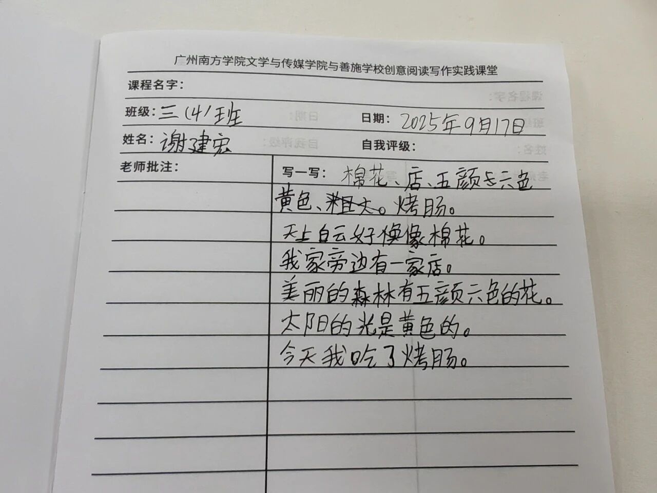 本次童诗写作课程以由点到面,循循善诱的方式引导善施学校的小同学们从零开始,在自主创作中感受诗歌的魅力,体验了一堂富有启发性的诗歌教学课。