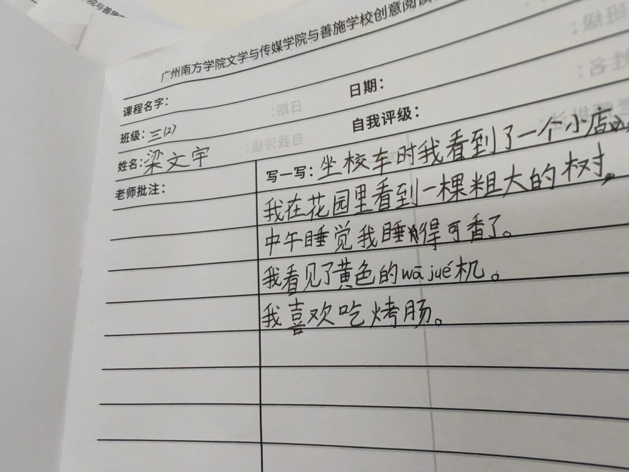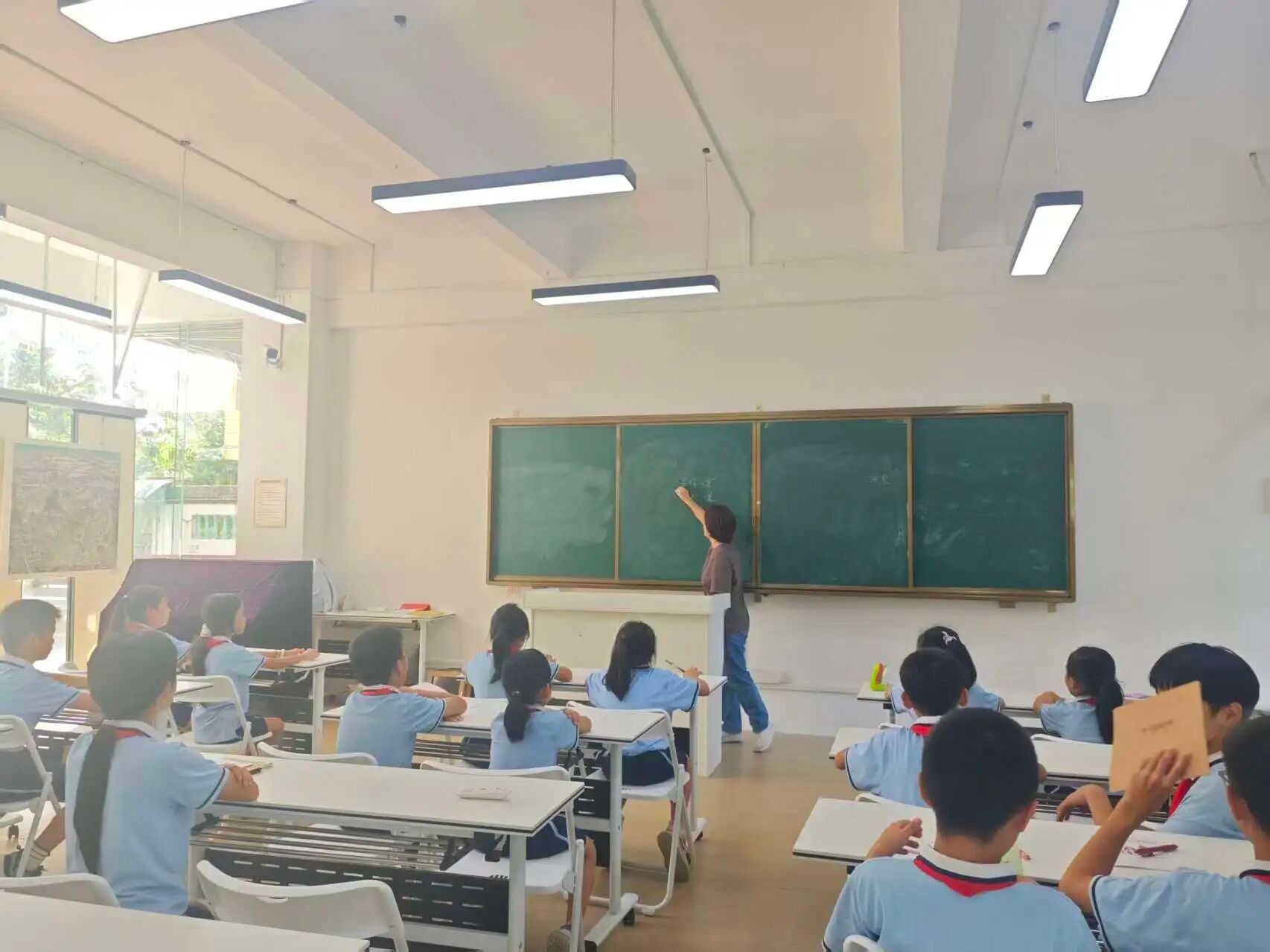 选词成句,由句入诗。“大家选择黑板上的五个词,试着用这五个词分别写五句话。”旧海棠老师通过由词到句的方式,鼓励同学们迈出诗歌创作的关键一步——将脑海中的意象组合成完整的语句。课堂安静了下来,只听得台下纸笔沙沙的声响。同学们或是行云流水、奋笔疾书,或是执笔凝思、眉头微蹙。一笔一划、一字一句间,稚嫩的心神渐渐触摸到诗歌的温度。