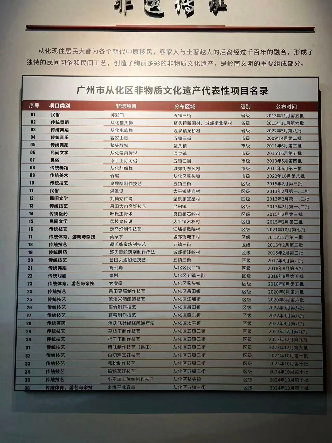 2025年9月2日上午,英国威廉集团光影视界数字演播创艺坊的师生调研团队走进了从化区博物馆,作为调研第一站,区博物馆为调研团队打开了认识从化非遗的窗口。馆内设有专门的非物质文化遗产展厅,整体规模适中,既有实物陈列,也有视频讲解,较为系统地呈现了从化地区非遗项目的整体面貌。
