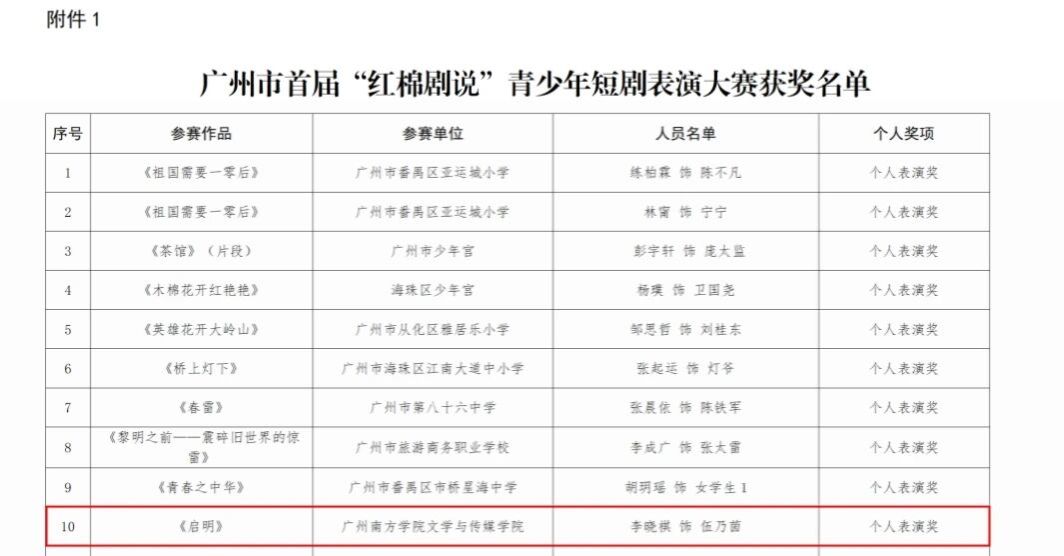近日,由中共广州市委宣传部、广州市教育局、广州市文化广电旅游局、共青团广州市委员会主办,广东省演出有限公司承办的“英雄花开英雄城”广州市首届“红棉剧说”短剧大赛中,表演大赛共有38个作品入围,走进爱国主义教育基地、专业剧场“边赛边演”。