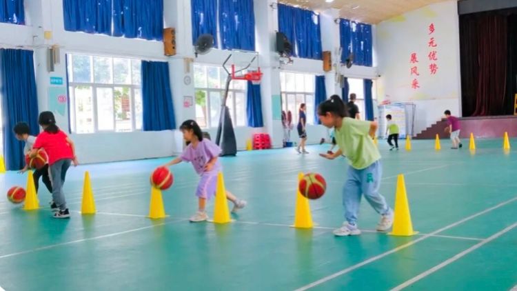 课堂上,小朋友们在运动中尽情欢笑,享受着篮球带来的快乐。在一次次的传球、接球、投篮中,他们的团队配合意识不断增强。看着小朋友们被汗水浸湿的衣裳和脸上灿烂的笑容,大家深切感受到“身体是革命的本钱”的意义。这堂看似普通的体育课,也让小朋友们对“永不言弃,排除万难”的党员精神有了懵懂的领悟,在心中种下了积极向上的种子。