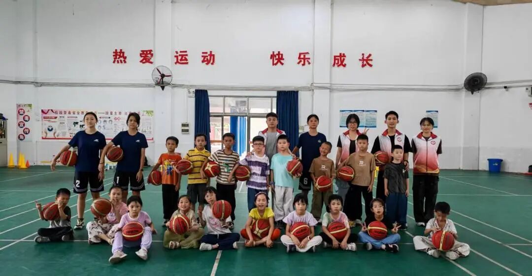 抵达操场后,社区学校的黄老师迅速接过“接力棒”,带领小朋友们投入到教学当中。黄老师结合体能训练与趣味游戏,简单设计了“运球接力赛”和“投篮挑战”等环节。志愿者们则在一旁维持课堂纪律,时刻留意着小朋友们的安全。