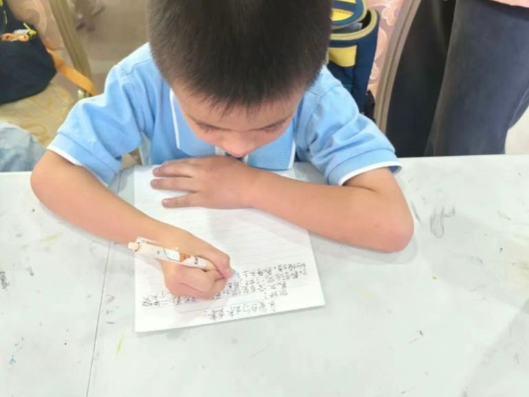 上午第一节课《写给英雄的一封信》在温馨氛围中展开,王璨老师带领小朋友们开启了一场心灵对话,让他们明白了书信作为情感表达的载体进行传承的意义,引导他们借助书信向心中的英雄倾诉敬仰与感激。小朋友们奋笔疾书,笔尖流淌出对身边默默奉献的父母、亲友等平凡英雄的深深感激,同时,他们也明白了英雄默默奉献的意义。这一封封满载深情的书信,如同播撒在心田的种子,悄然种下了感恩与传承之花。