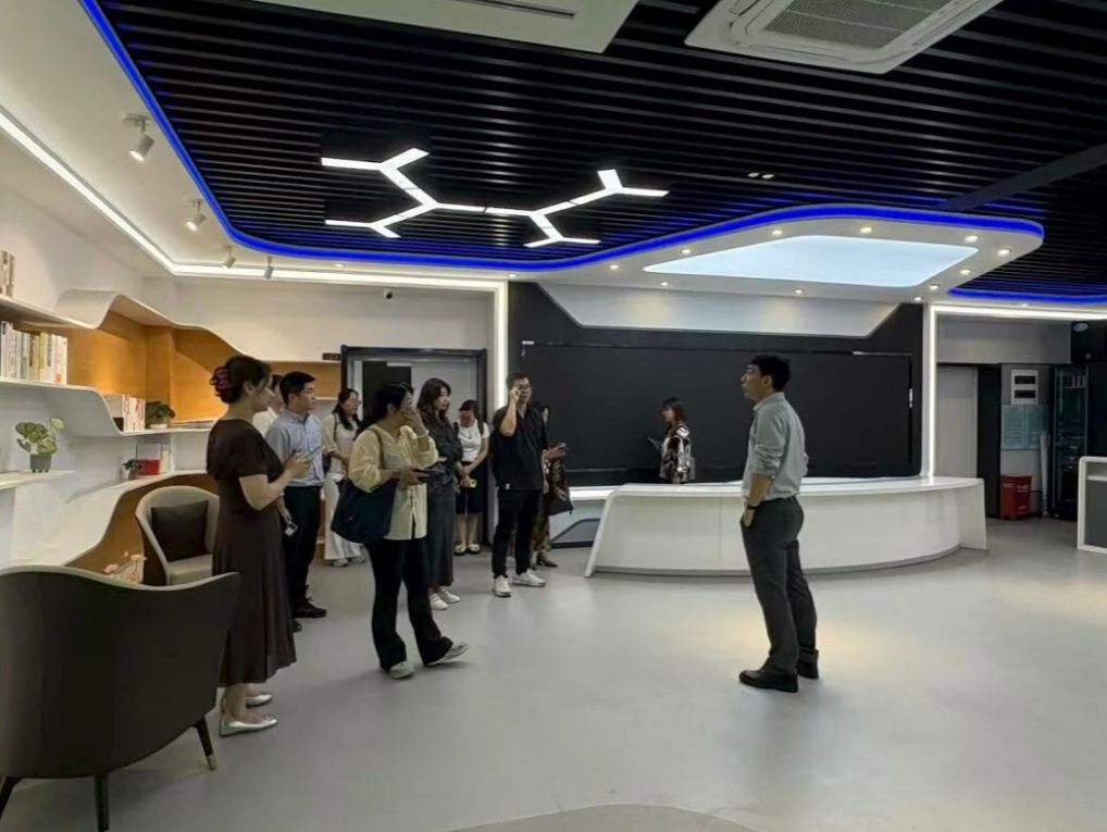 座谈会后,我院教师团队参观了浙江传媒学院传媒实践教学与艺术创作中心的“人工智能内容生成与国际出版实验室”与“虚实融合智能演播实验室”。作为国家级实验教学示范中心的重要支撑平台,实验室配备了AIGC信息加工工具系统、XR虚拟拍摄系统、无穿戴动作捕捉系统、虚拟摇臂机器人、轻型智能遥控云台、4K导播切换台、自动化控制数字调光台、自动化控制调音台等前沿设备。实验室老师现场演示了如何利用这些便捷高效的技术解决方案,将其应用于新闻生产、虚拟拍摄及国际出版等教学实践。这些方案在支持学生前沿创作与学科竞赛方面取得的成果,令我学院教师印象深刻,并深受好评。