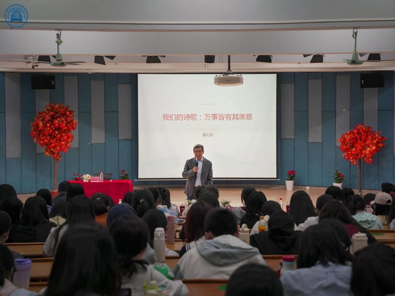 讲座伊始,孙立院长对黄礼孩老师的到来表示热烈欢迎。他在致辞中指出,“诗是人类最早的精神产品”,源于人类表达情感与思想的内在需求,因而绵延至今。他强调,诗歌是灵魂的呈现,是语言的精粹,凝聚着人类深沉的思考与情感。作为拥有悠久诗教传统的“诗国”,中国诗歌承载着深厚的文化意义。