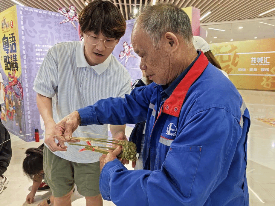 11月9日下午,广州市花城汇北区中庭广场迎来了一场温暖的互动分享会。从化仙溪村村民唐明超、唐正崇和仙娘溪村村民易桂花,作为特邀嘉宾来现场,与广州市从化区深耕社会工作服务中心(以下简称“深耕”)的社工和英国威廉集团师生一起分享了关于竹编和乡村互助养老的故事。