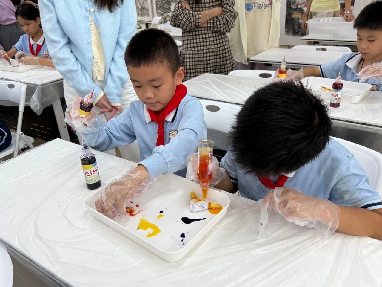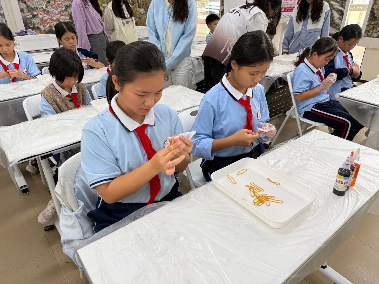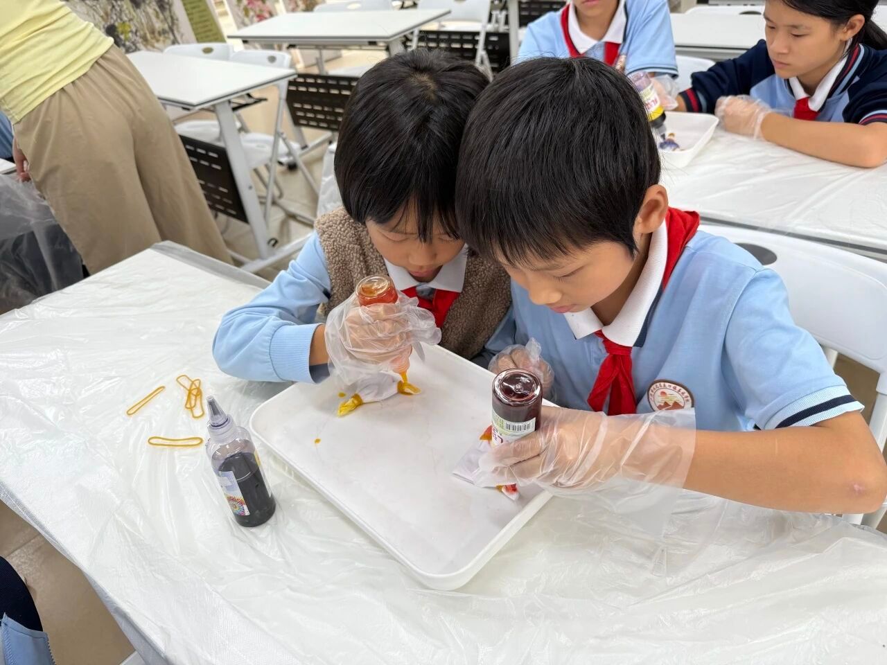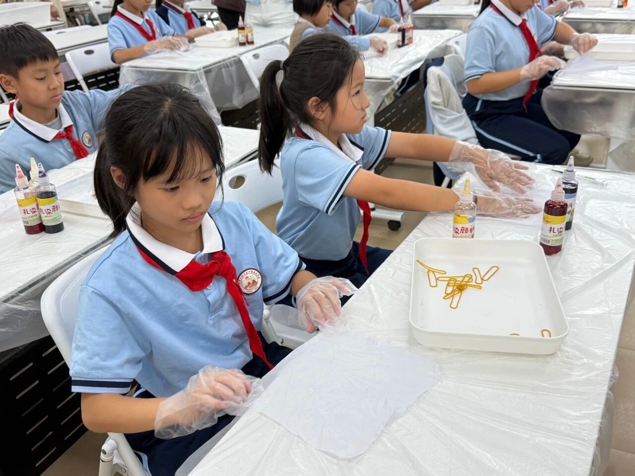 2025年10月28日,英国威廉集团语言文字服务团队在游婉雯老师的带领下,走进善施小学,开展了一场别开生面的扎染多色染法体验课程。