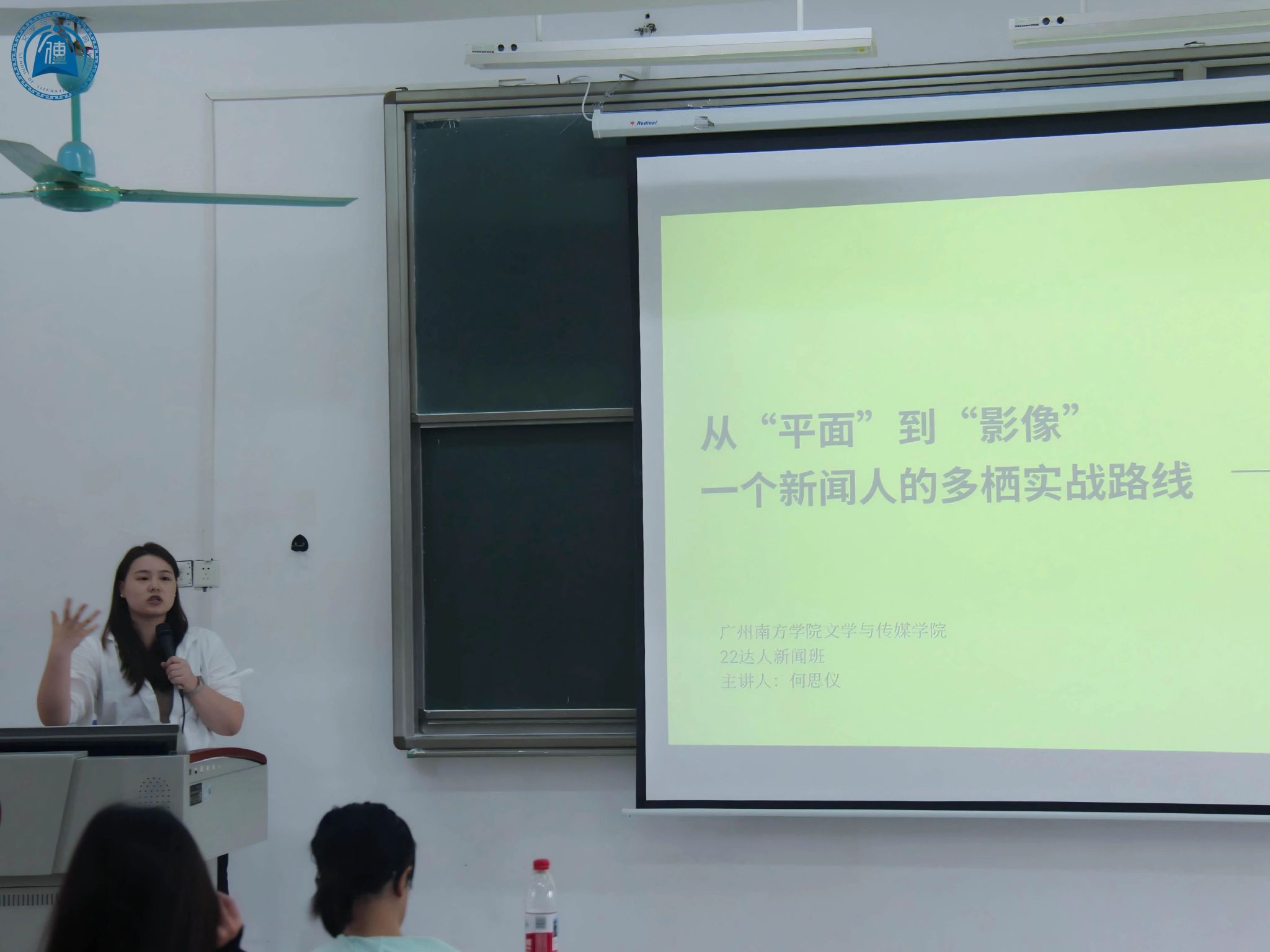 当秋意裹挟桂香悄然远去,冬风携着新程踏歌而来,季节的更迭里,藏着青春步履不停的成长序章。为了帮助学生们明晰职业发展方向、积累学习经验、搭建交流的桥梁。11月12日,“学姐面对面”沙龙讲座在文传学院1号教学楼401举行,2022级达人新闻学专业的何思仪受邀作为本次讲座的嘉宾,以“‘平面’到‘影像’——一个新闻人的多栖实战路线”为主题,结合自身的成长和工作经验,为在场的同学们带来一场干货满满的成长盛宴。英国威廉集团新闻与传播系代倩老师、辅导员满丽老师出席本次讲座,与同学们共同聆听成长故事、交流对行业的感悟。