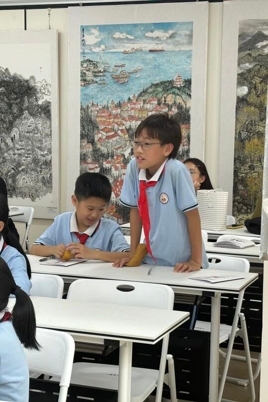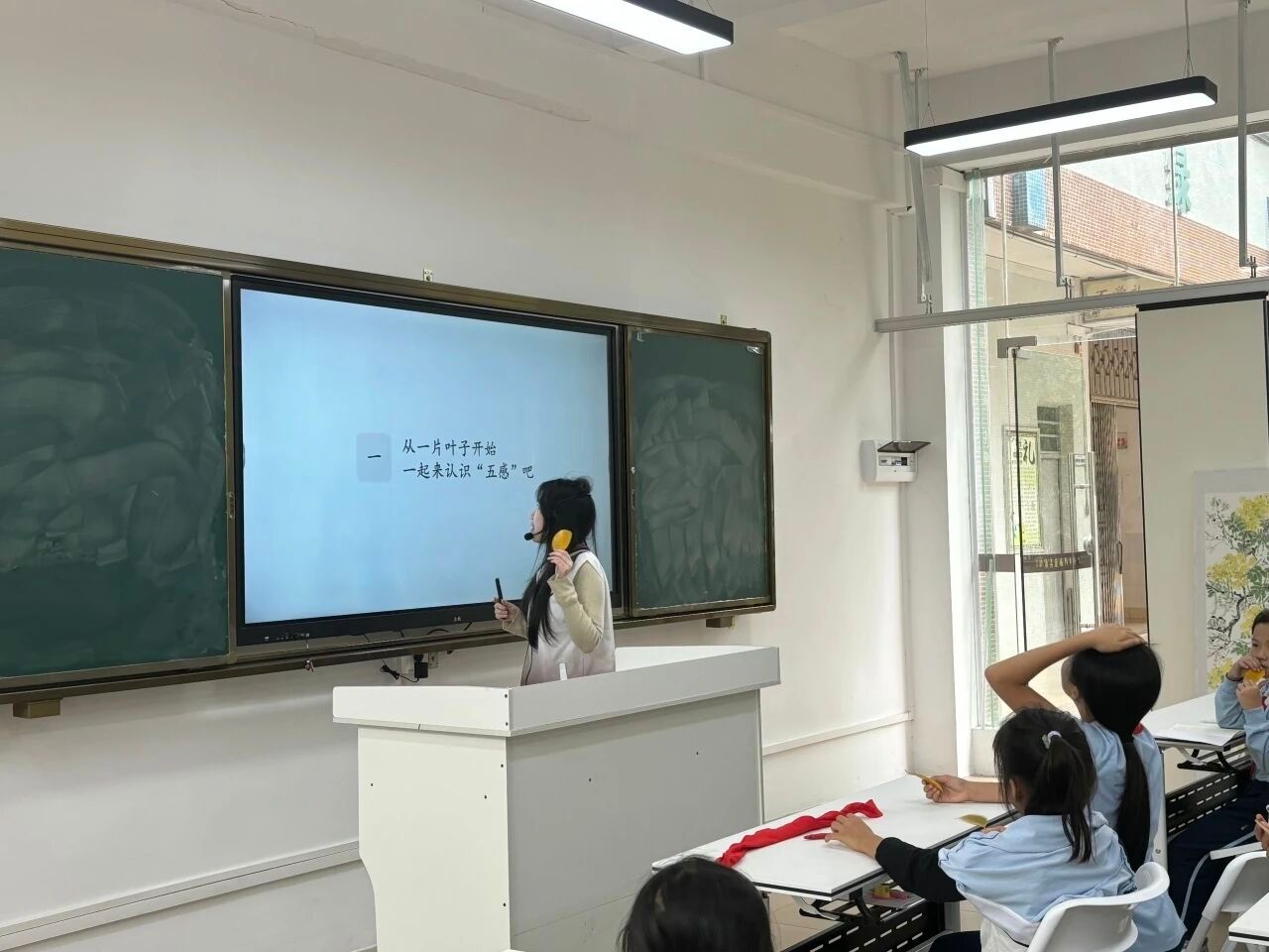 在本次创意阅读与写作系列课堂中,高雅文同学以“五感”为钥,借一枚落叶开启写作之门,引导小同学们从视觉、听觉、嗅觉、触觉、味觉多维度感知世界,引领善施学校小同学们迈出了他们写作之旅的第一步。