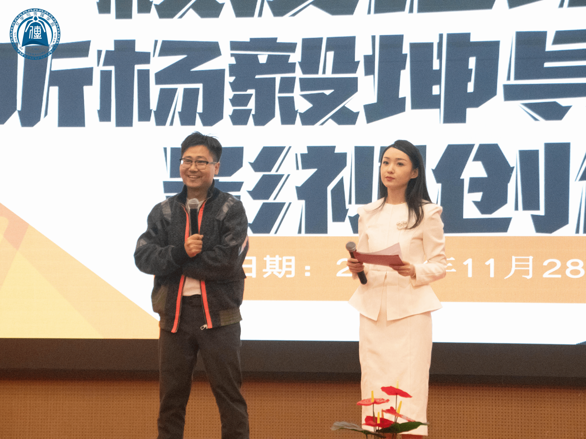 个人分享环节,杨毅坤导演深情回望了从文学专业跨界影视导演的成长历程,以亲身经历印证了“实践是创意落地的土壤”这一核心感悟。谈及创作伙伴,他感念于在四川大英与周迪俊导演的相遇相知,正是这份志同道合的创作情谊,促成了此次返校传薪的美好机缘。