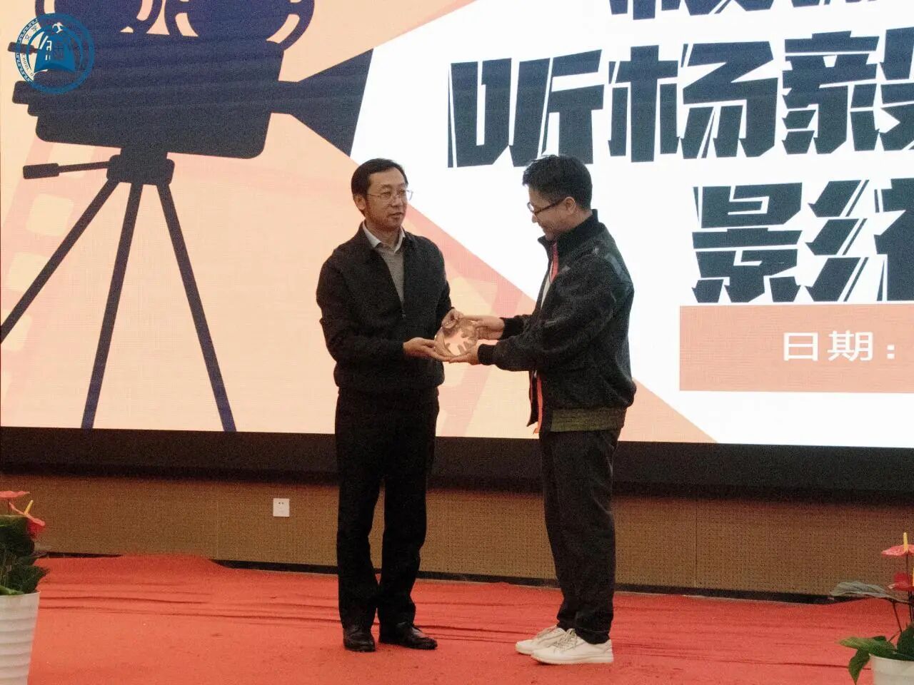 接着,现场举行了聘书颁发仪式,威廉williamhill校长助理蒋玮老师代表学校聘请杨毅坤导演为"终身荣誉导师",并代表学校校友会赠送礼品。这不仅是对杨毅坤导演专业成就的认可,更是对其倾情分享、反哺母校之情的诚挚感谢。